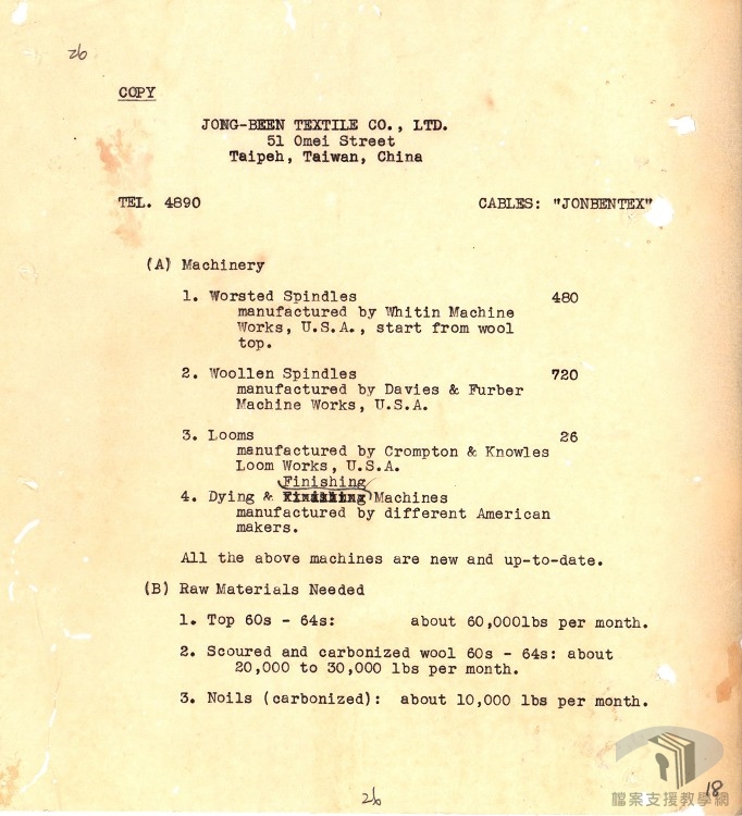 本次主題針對臺灣紡織業發展過程的特色進行介紹,首先由於美援政策與中美經濟合作的歷史背景下,臺灣的紡織原料仰賴外國原料的輸入,再進行加工。其次是1950年代工業發展過程中,根據謝國興的研究,上海商人將其產業在二戰後遷廠到臺灣復業的比例甚多,紡織業的轉移是其一,在1952年之前,臺灣共有十三家紡紗廠,其中就有七家是由上海的工商業者到臺灣設立的,分別是華南紡織、申一紡織、中國紡建、臺北紡織、臺元紡織、彰化紗廠、遠東紡織廠。其次,臺灣本地資本家亦加入紡織業,如吳火獅成立的新光紡織廠,招募農村的女性到廠內工作。檔案管理局的新聞局檔案典藏有許多紡織廠的勞動情形、紗錠成品、紡織機器等照片,能呈現當時的紡織產業榮景。