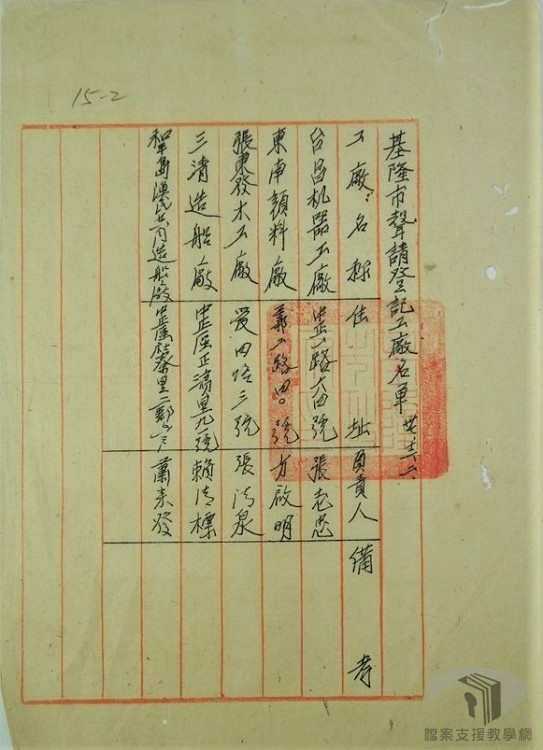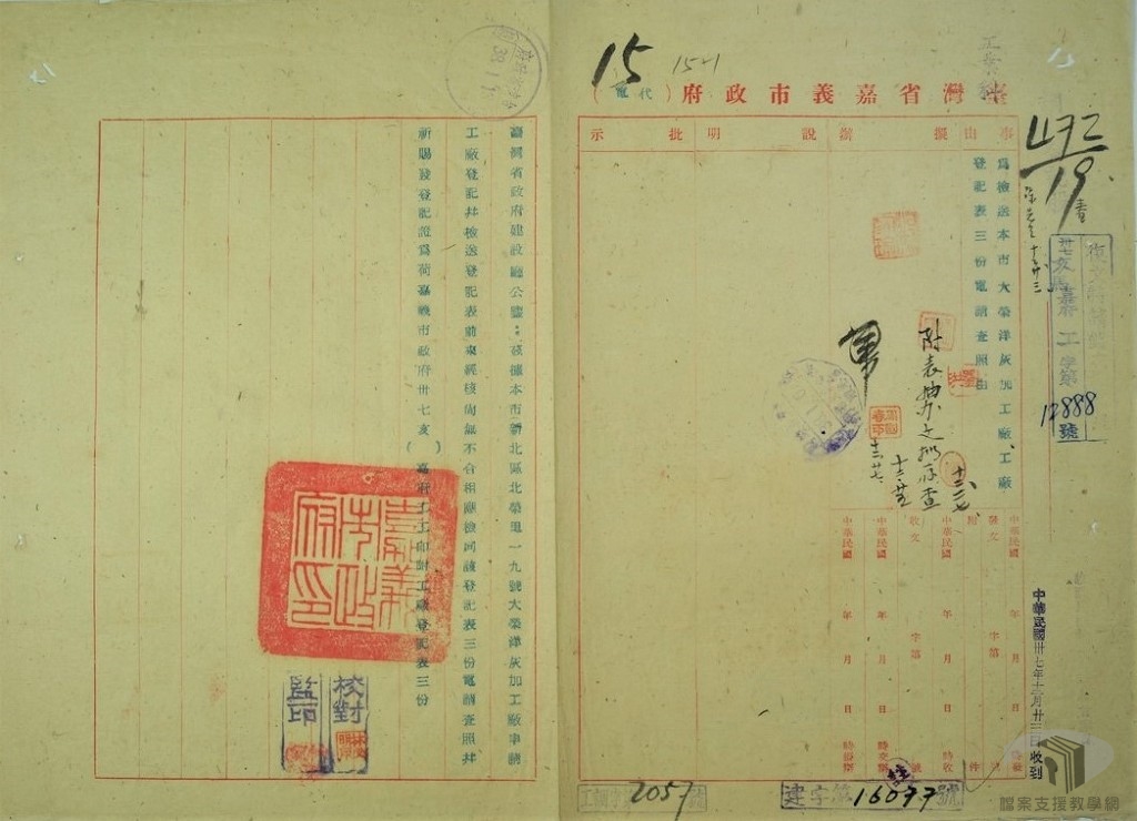 二戰後,臺灣各縣市蓬勃發展各式小型加工廠,臺灣省政府建設廳陸續通知各縣市政府呈報該行政區域內的各種工廠登記文件,因此能得知當時正在經營的各種小加工廠的工廠名與所有人代表等資訊。在營造業相關聯的屋瓦製造、石灰加工、製材工廠等等民生工業方興未艾。