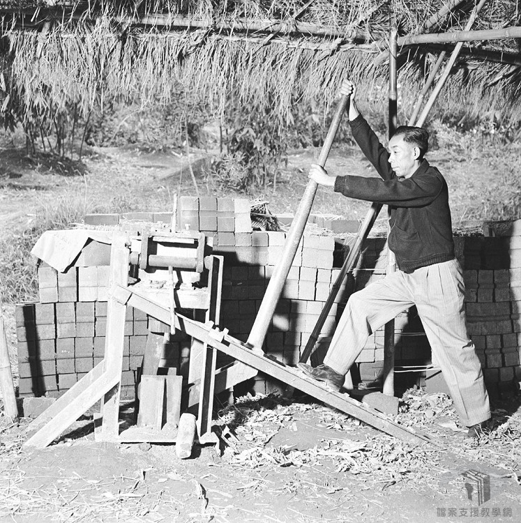 二戰後,美軍來臺灣協助住宅興建的顧問人員為了讓農民、工人自行建造或翻新房屋,藉以降低政府營建新住宅與人民購屋的成本,來到鄉間宣傳「高壓手工製磚機」。該機器利用槓桿原理,將水泥磚所需材料放入模子內蓋緊後,手持桿子往下壓,機械受到推擠則往上施力,反覆數次後即可將磚塊壓製紮實。除了使用水泥,也能運用臺灣自身豐富的土壤,作為製磚機的磚塊原料。