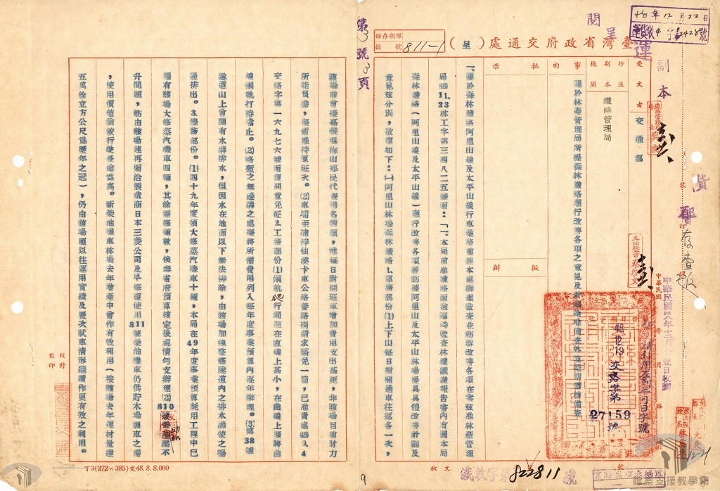 日治時期為運輸阿里山林場林木,遂建設阿里山森林鐵路系統。鐵路系統由多條分布在阿里山山區的林場線,與聯絡山區至嘉義的主線所構成,除承載林木,也是阿里山公路通車前,沿線聚落客、貨運重要運輸管道。臺灣光復後,阿里山森林火車持續承擔運輸木材與客運的任務。民國50年(1961),林務局取得交通部專用鐵路立案執照,促使鐵路業務法規化與制度化,強化客貨運的運輸安全,發展高山鐵路觀光列車。53年(1964),阿里山林場砍伐業務結束後,客運與觀光成為阿里山森林鐵路的主要功能。97年(2008)6月,以委外經營模式,交由宏都阿里山公司經營,至99年3月由行政院農業委員會林務局嘉義林區管理處收回自管,102年(2013)5月起委由臺灣鐵路管理局協助營運。107年(2018)7月林務局成立專責機構自營,並將「阿里山森林鐵路」更名為「阿里山林業鐵路」。