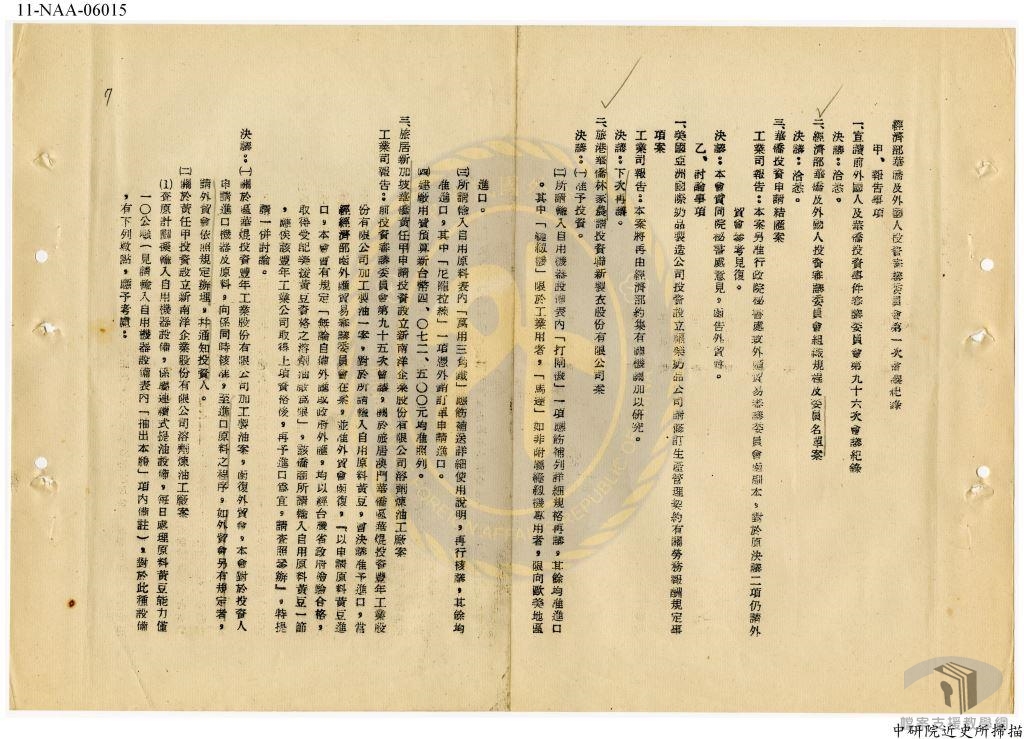 在尹仲容等技術官僚的極力主張下,自1960年代起,政府當局積極推動由公營事業發展工業,再把初具規模的工業轉為民營。首先獲致成效的,是紡織業的發展。當時,政府以美援資金與棉花供應紡織業者,由後者紡紗織布,獲得優厚利潤,奠定了臺灣紡織業的基礎。