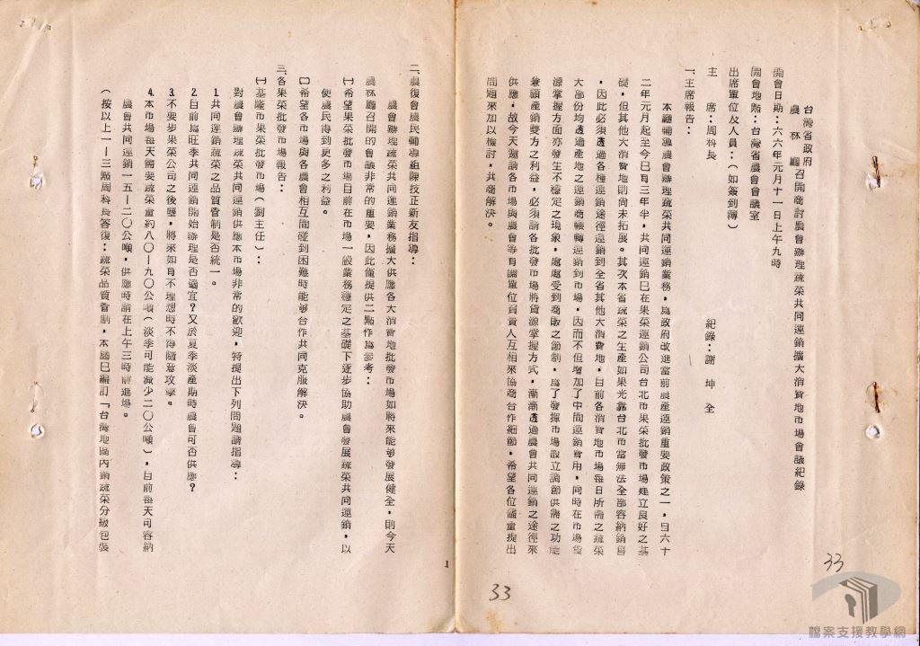 農民辛苦勞動收獲的農產品,最後要經過集貨、運銷的過程才能進入市場。這通常包括一連串緊湊的採收、包裝、運輸、卸貨、拍賣、分送等過程,需要用到各種包裝資材或是冷藏設備。在現代自由市場的環境中,臺灣農產品運銷的管道多元。稻米作為基本的糧食作物,在過往公糧政策的影響下,至今農民較多還是通過碾米廠的通路銷售農產。果菜則多採共同運銷的方式進行銷售,辦理共同運銷的單位包括農會與青果運銷合作社等各種農民團體,經過各種運銷方式的農產品最終進入農產批發市場進行交易。