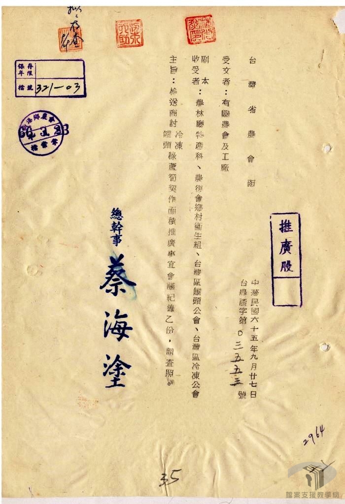 回顧臺灣經濟發展的歷程,民國38年(1949)政府遷臺,大批軍民隨之而來,島內面臨生產減退、人口暴增的問題,軍事防衛支出壓力沉重。幸而自日本統治時期以來臺灣農業生產基礎完備,糖、米等農產品出口成為臺灣外銷主力商品,亦是外匯收入的主要來源。在民國39年(1950)至民國49年(1960)年間,糖、米出口累計外匯金額達10億美元,占同期累計出口總金額近7成。這些外匯讓臺灣可對外購買原物料與機器設備,足見農業維持戰後臺灣經濟的重要性。民國42年(1953)政府推動經濟建設四年計畫,提出「以農業培養工業,以工業發展農業」的口號,發展農業並扶植本地資本需求較低、勞力密集的工業,如紡織、合板等輕工業以替代進口,為臺灣工業發展奠定基礎。另一方面,美援對臺灣農工發展提供的挹注,亦是穩定臺灣經濟的重要推手。