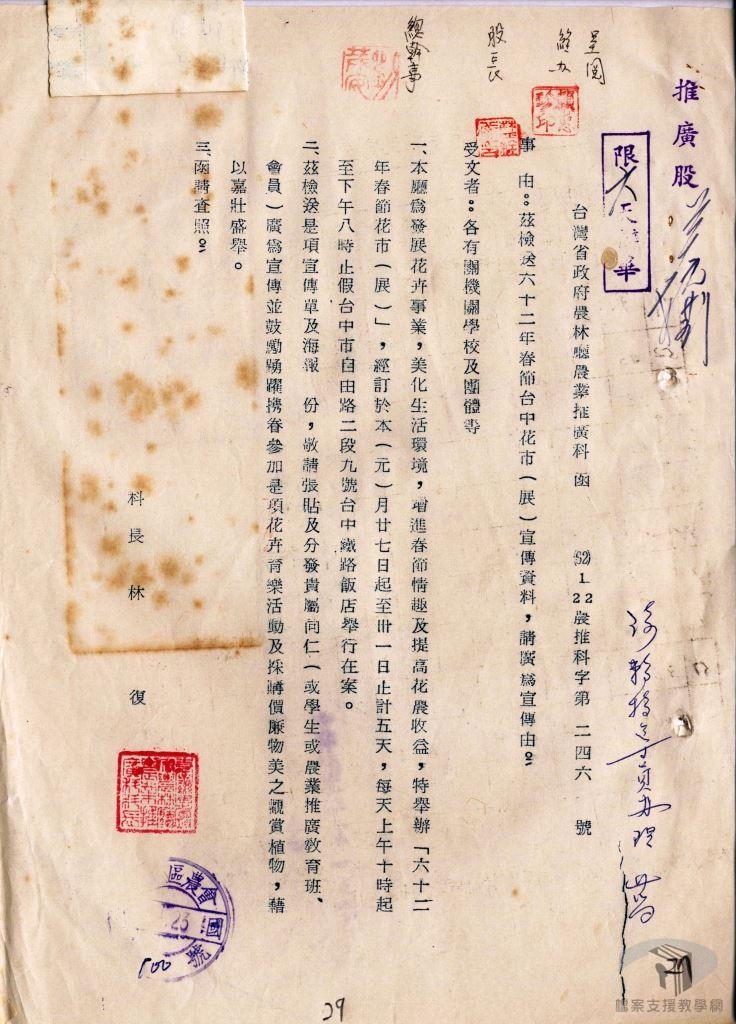 回顧臺灣經濟發展的歷程,民國38年(1949)政府遷臺,大批軍民隨之而來,島內面臨生產減退、人口暴增的問題,軍事防衛支出壓力沉重。幸而自日本統治時期以來臺灣農業生產基礎完備,糖、米等農產品出口成為臺灣外銷主力商品,亦是外匯收入的主要來源。在民國39年(1950)至民國49年(1960)年間,糖、米出口累計外匯金額達10億美元,占同期累計出口總金額近7成。這些外匯讓臺灣可對外購買原物料與機器設備,足見農業維持戰後臺灣經濟的重要性。民國42年(1953)政府推動經濟建設四年計畫,提出「以農業培養工業,以工業發展農業」的口號,發展農業並扶植本地資本需求較低、勞力密集的工業,如紡織、合板等輕工業以替代進口,為臺灣工業發展奠定基礎。另一方面,美援對臺灣農工發展提供的挹注,亦是穩定臺灣經濟的重要推手。