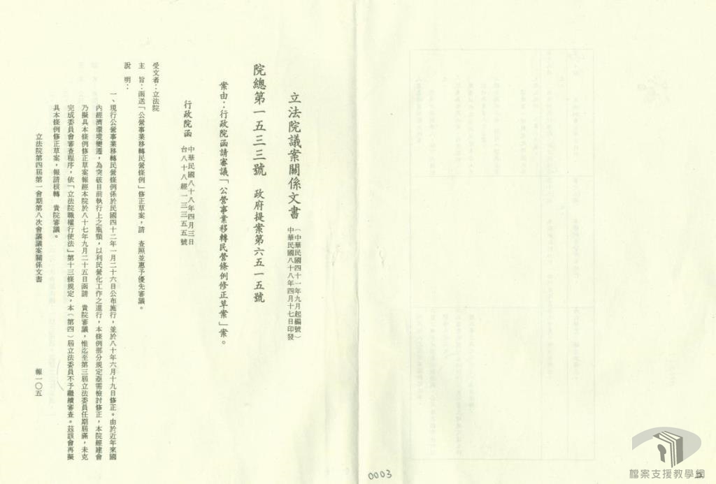 1960年代,政府當局因應全球經濟朝自由化、國際化發展的風潮,已有相當的公營企業民營化作為。民國78年(1989)起,更積極推動相關政策,目的在提升企業經營績效,活絡市場競爭,促進民間投資。首先,成立「行政院公營事業民營化推動專案小組」(後更名為「公營事業民營化推動指導委員會」) 。另外,事業主管機關設有民營化推動單位、設置民營化推動小組,並委託民間顧問公司研擬民營化計劃書,據以推動民營化工作。