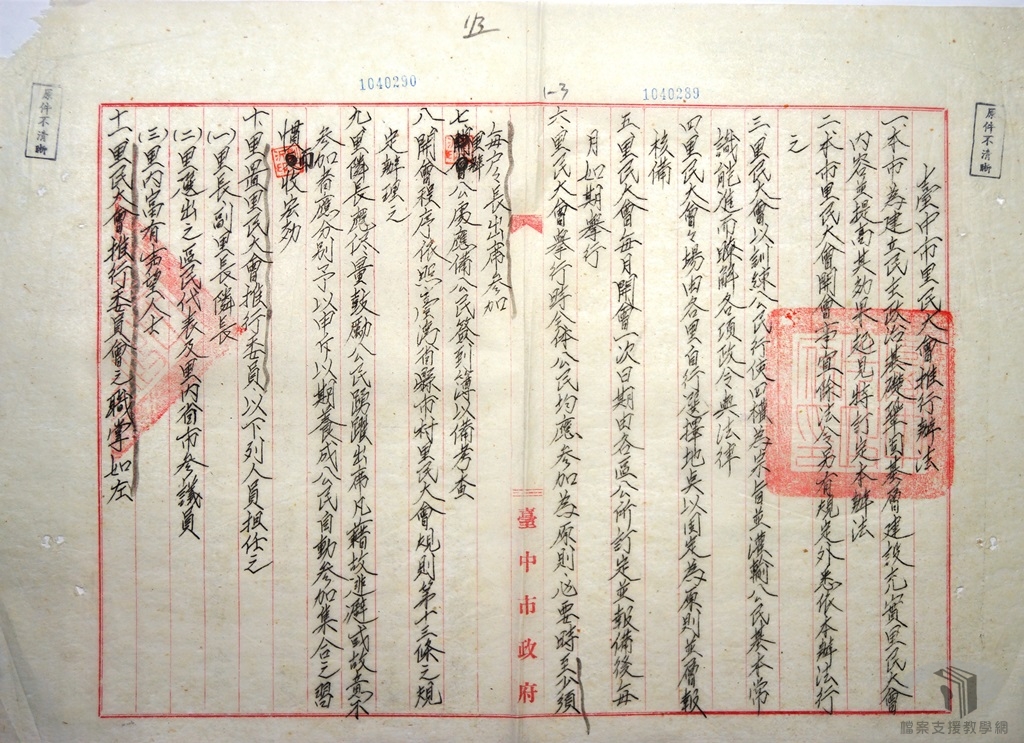 在臺灣省推行地方自治初期,政府重視村里民大會功能,利用這個場合進行政治教育、政策宣傳與精神動員。村里民大會貼近一般人民的生活,政府施政中有關經濟、民生內容常利用這個機會向人民說明,像是稻穀換肥、鼓勵兒童就學、查禁不良風俗等,可觀察當時社會狀況。