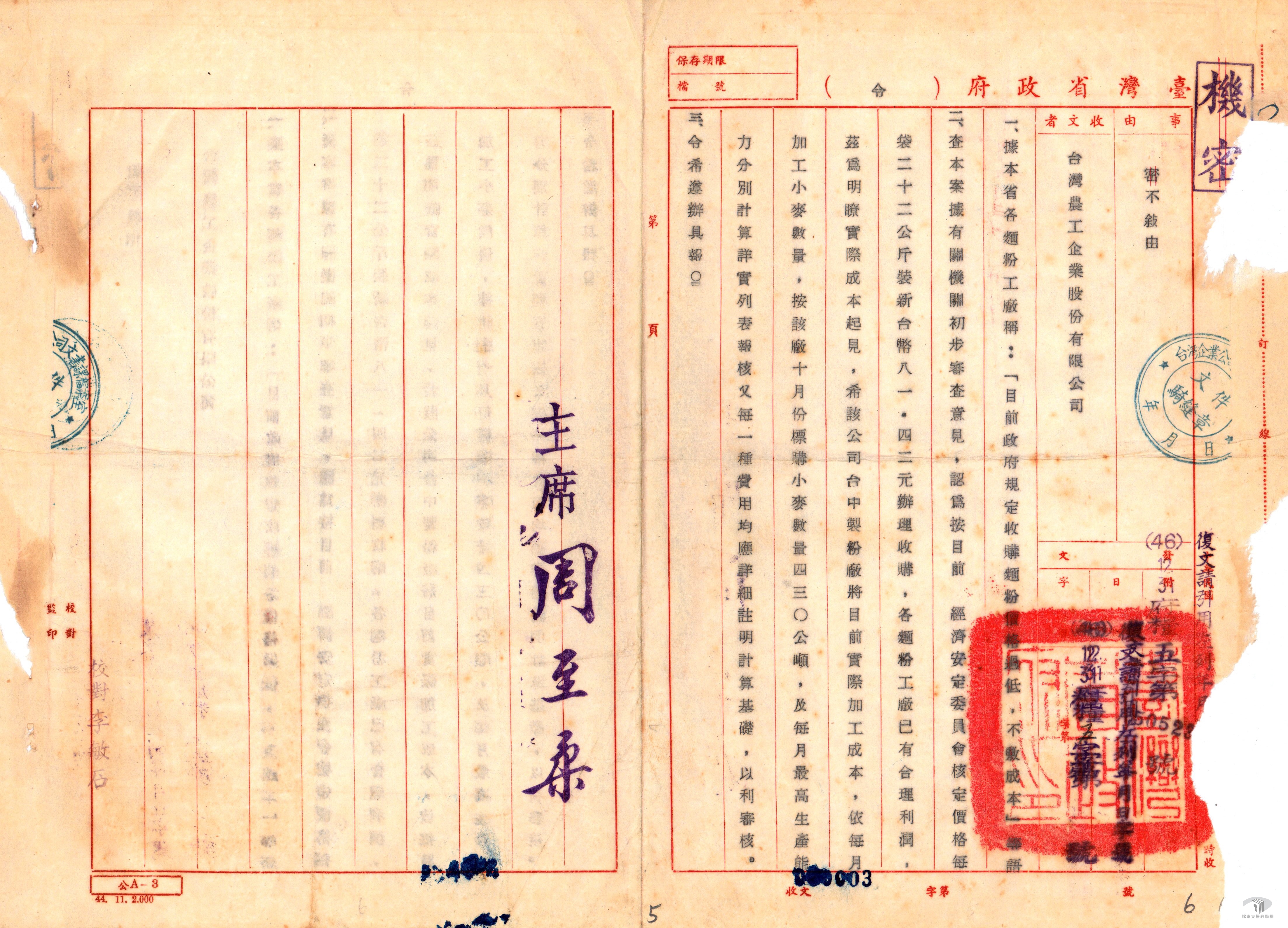 由於麵粉在光復後供應臺灣食物的面向上頗為重要,故生產麵粉的原料也成為重要農務。民國38年(1949)臺灣的小麥栽種量有限,且其中半數被農民本身留用,數量難以支撐產業。不過一年多後,各麵粉廠逐漸增加,開始籌組同業公會,並於民國41年(1952)正式問世。至民國43年(1954)始,政府公布麵粉相關的分配管理辦法,臺灣麵粉產業的產銷制度亦日漸健全。