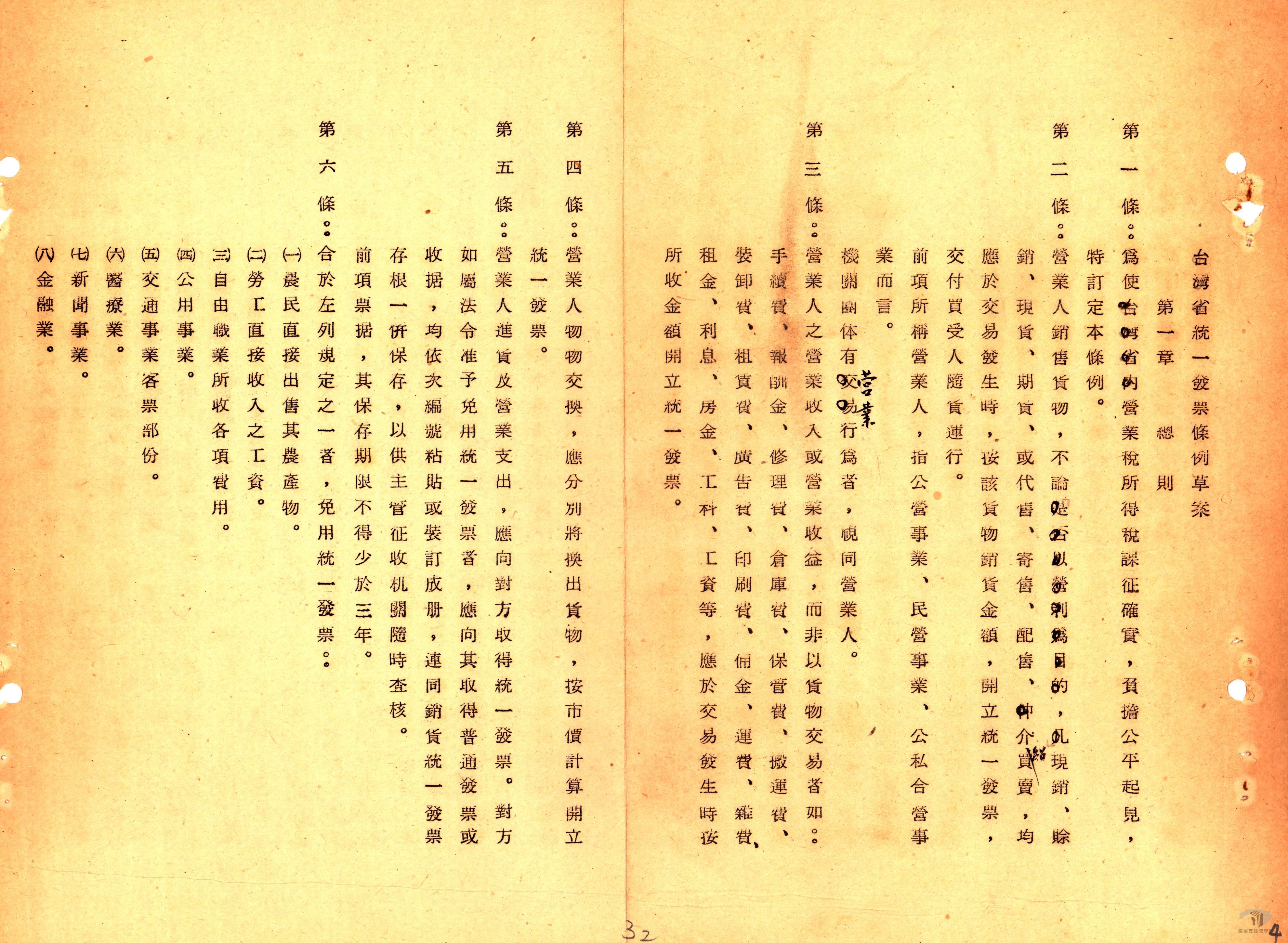 稅收為政府廣闢財源的方式之一。為防止商家逃漏稅,民國39年(1950)12月臺灣省政府財政廳公布《臺灣省營利事業統一發貨票辦法》與《臺灣省統一發票給獎暫行辦法》等兩項法規,規定除非特定情況,商家均須開立統一發票。此後政府又增補法規,如民國71年的《統一發票給獎辦法》等,使開立統一發票的制度更形完備。