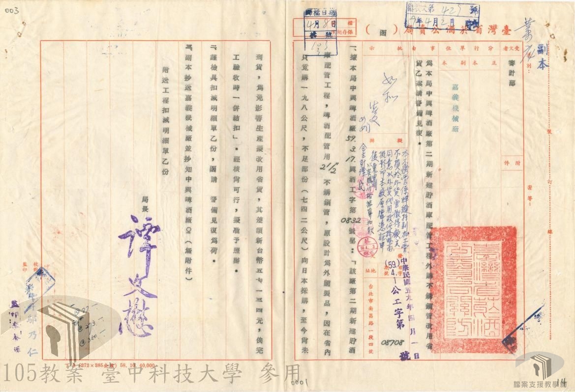 第二次世界大戰結束後,政府決定將舊時日本的產業全部收歸公有,澈底且正確地清算日本在臺產業,便成為接收時期最重要的工作之一。臺灣省行政長官公署在其麾下組織臺灣省接收委員會,負責此一任務,並於民國34年(1945)正式著手進行。隔年年初,又在臺灣省接收委員會下設立日產處理委員會,還在各地設立分會。不久後又增設日產標售委員會與日產清算委員會,全面處理接收日本產業等事宜。