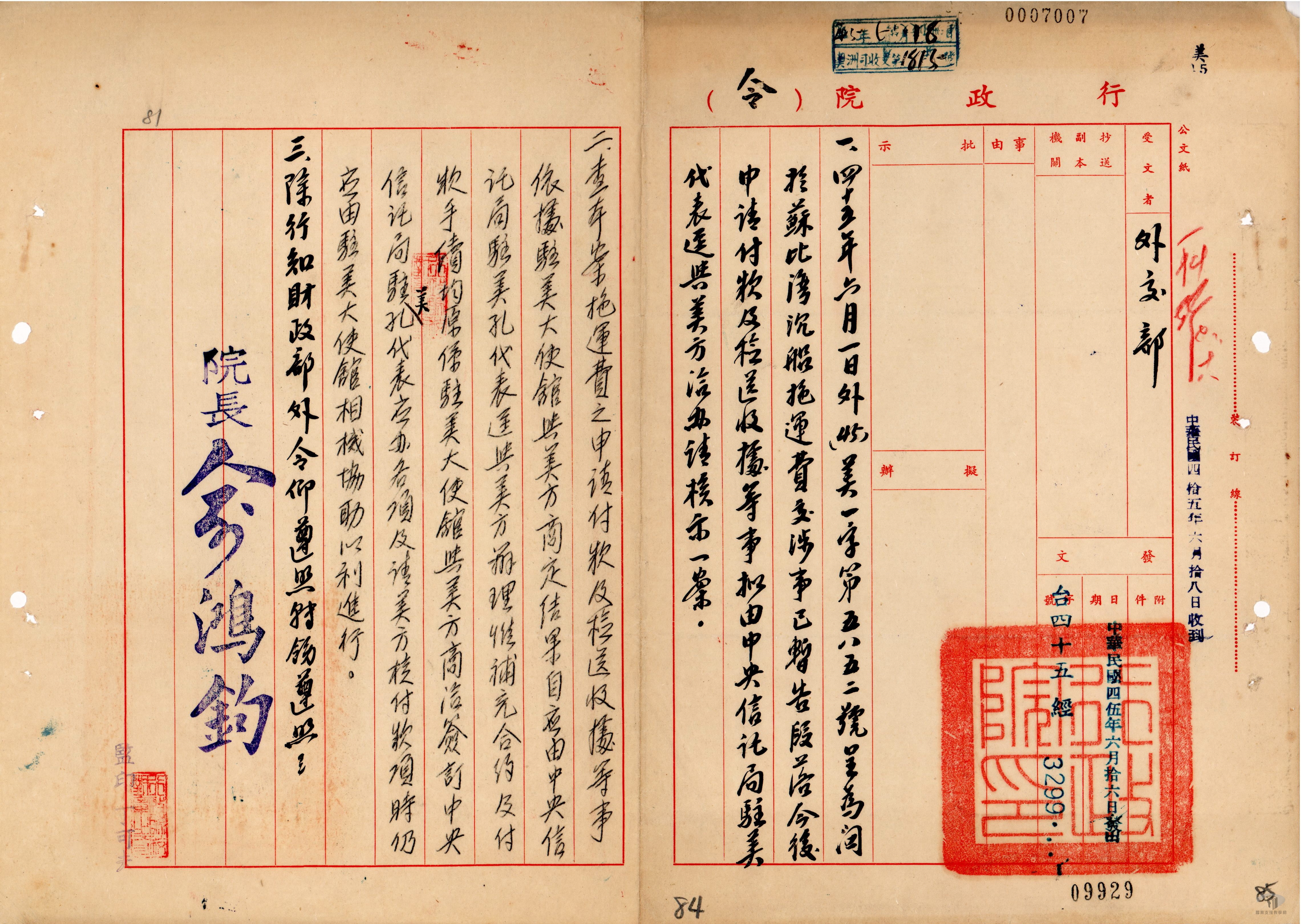 第二次世界大戰結束後,美國在各地提出重建計畫,對臺灣的援助則由民國37年(1948)美國國會通過《1948援外法案》開始。當時中央政府尚未遷臺,需要美援支持重建的地區遼闊。故政府決定與美國簽訂援助中國的雙邊協定,由外交部長王世杰(1891-1981)代表政府赴美簽約。同年,政府設立行政院美援運用委員會,負責美援物資的接收、管理與分配作業,並與美國聯合組成「中國農村復興聯合委員會」,共同策劃物資運用,推動農村建設工程。後因國共間的衝突不符美國利益,美國停止對華援助,直到韓戰爆發,美國方才重啟對中華民國的經濟與技術援助。