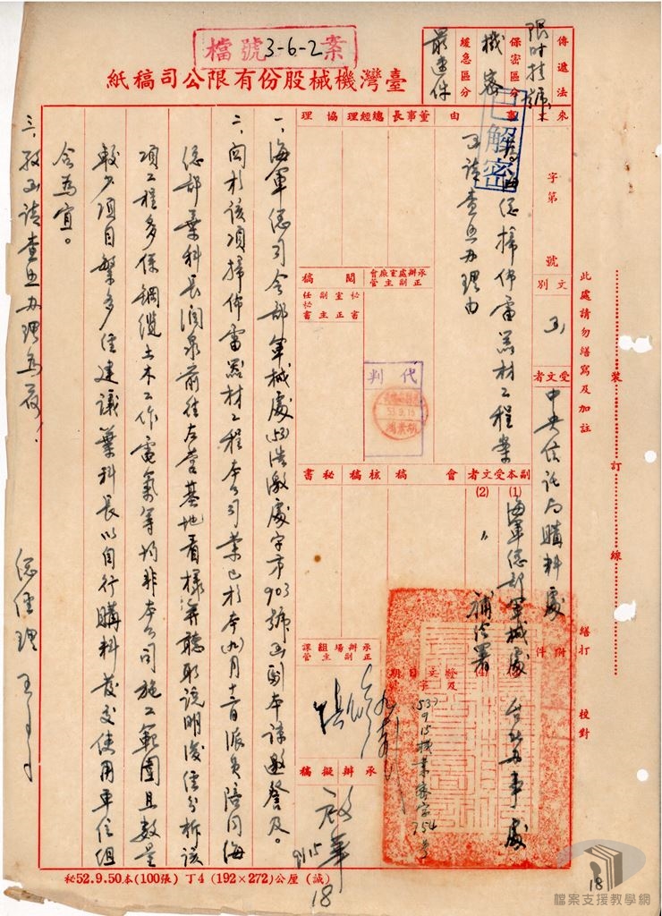 軍需用品的種類繁多,故具需求的單位勢需向各生產機關提出訂單,內容不一而足,產品與服務皆在其中。例如海軍總司令部軍械處,即在民國53年(1964)就掃佈雷器材工程,購置臺灣機械股份有限公司所提供之服務;隔年,又為浮箱棧橋之安裝工程,及軟木救生筏等產品,向同一公司請購。這些都是具有一定的生產障礙,且含有安全風險的「商品」。但正因如此,使得此類軍需工業可與較大規模的企業合作,對國內大型企業的發展,也有一定的促進作用。