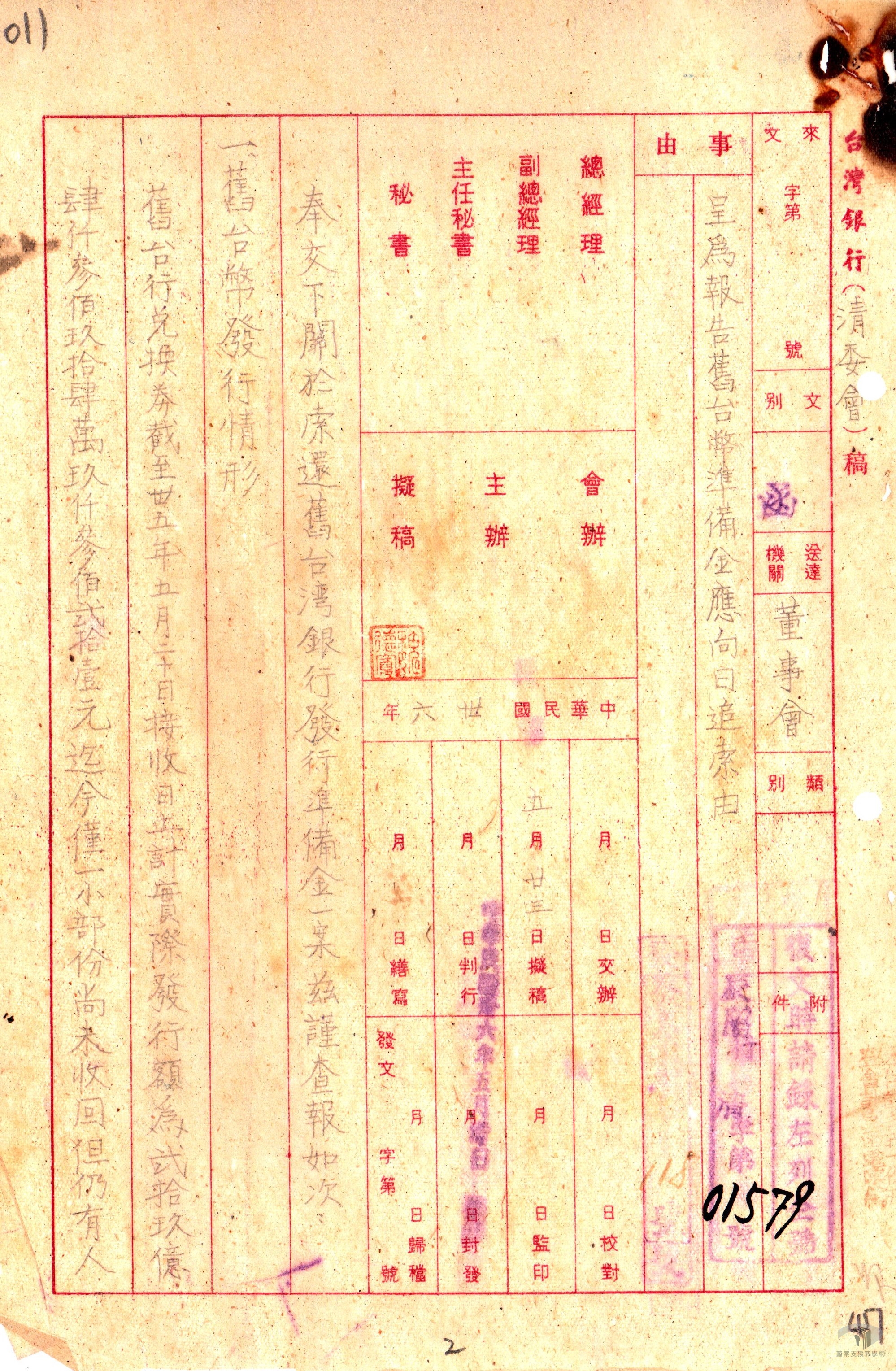 此後,即使日本投降,臺灣銀行仍須對臺灣省的公庫提供墊款,與日本統治時期無異,仍難發揮應有功效,導致原就窘迫的經濟情勢雪上加霜。民國35年(1946)5月20日,臺灣雖經幣制改革,發行「臺幣兌換券」,然其與法幣間的兌換狀況,造成熱錢自大陸地區湧入臺灣的結果。