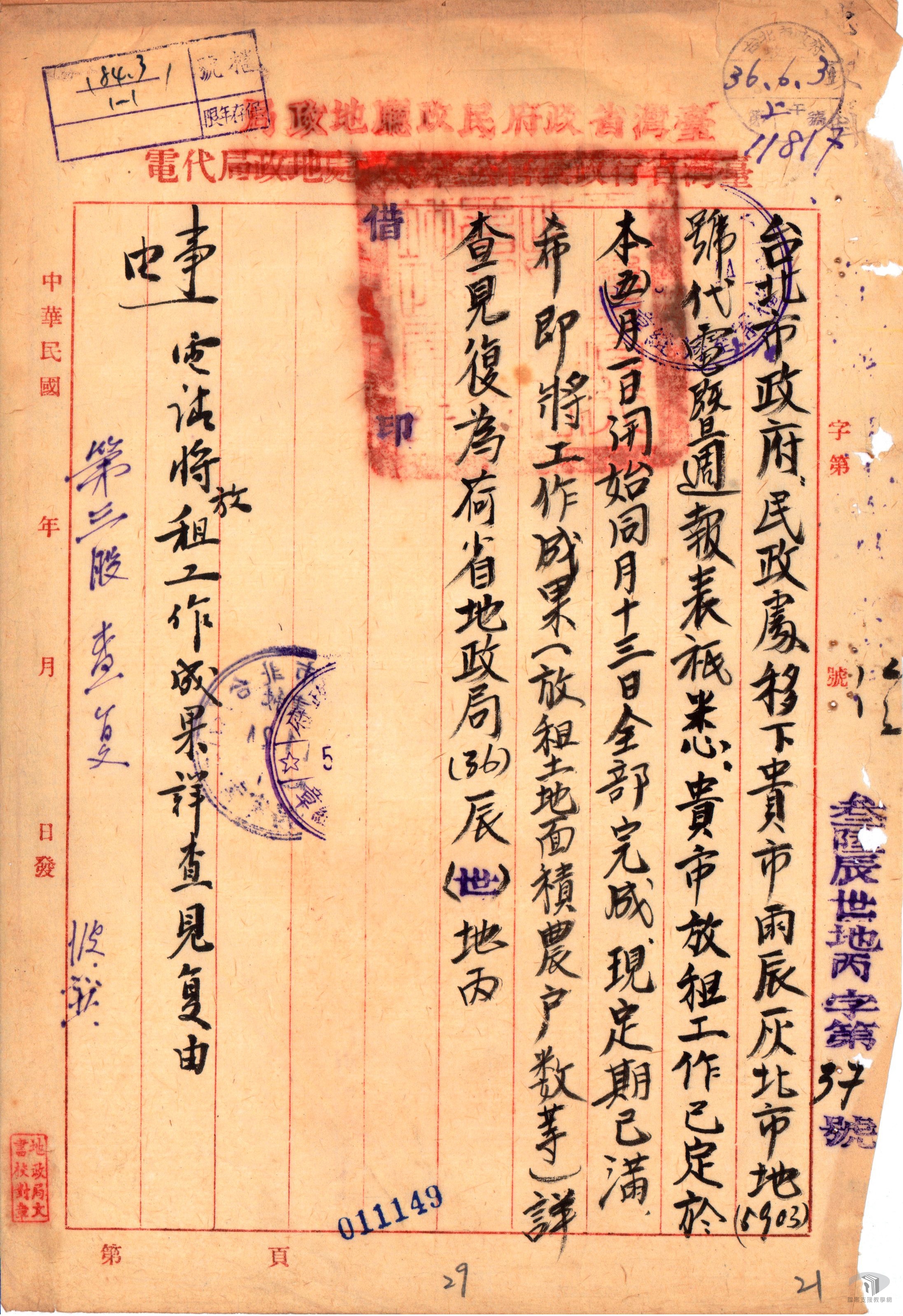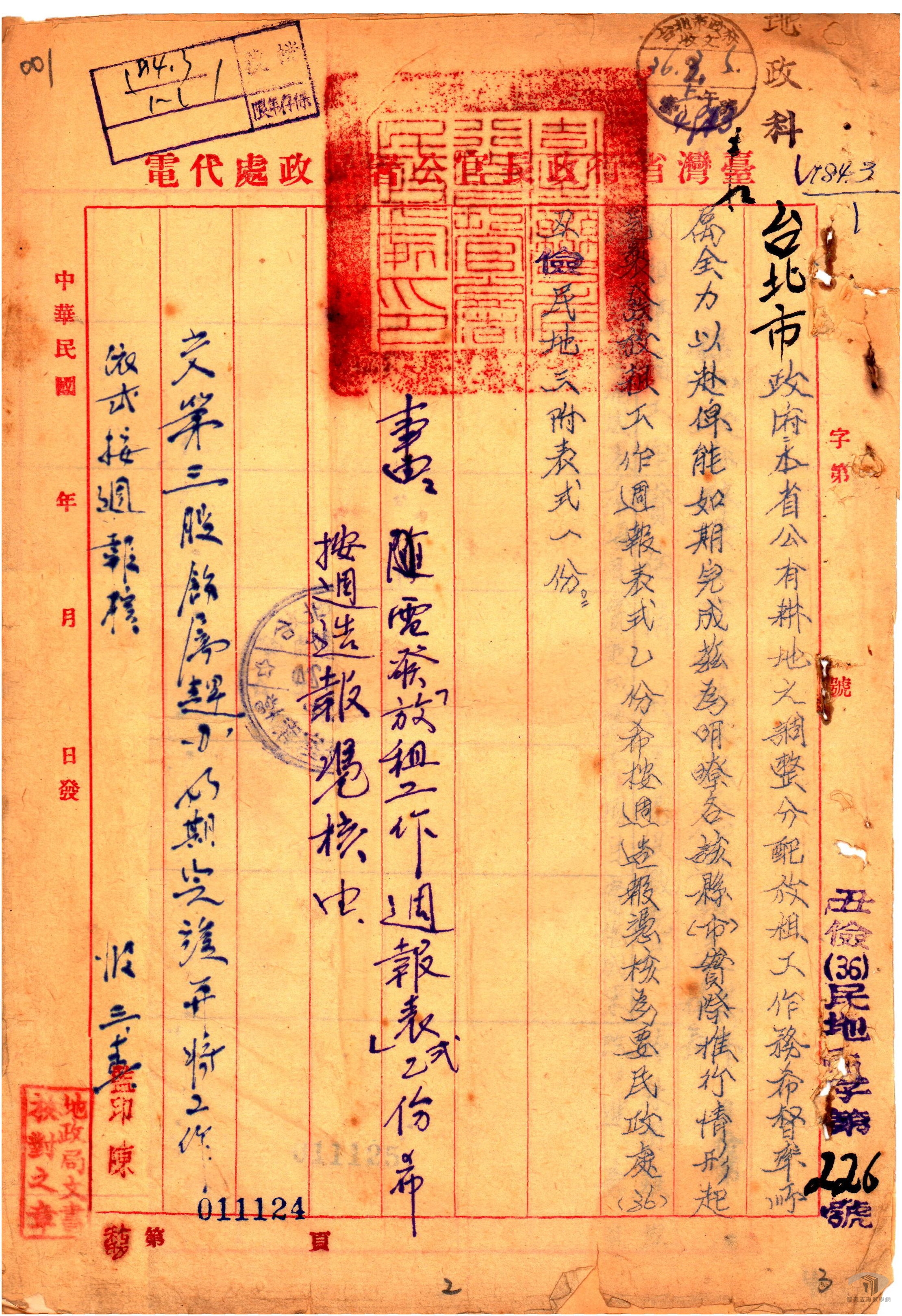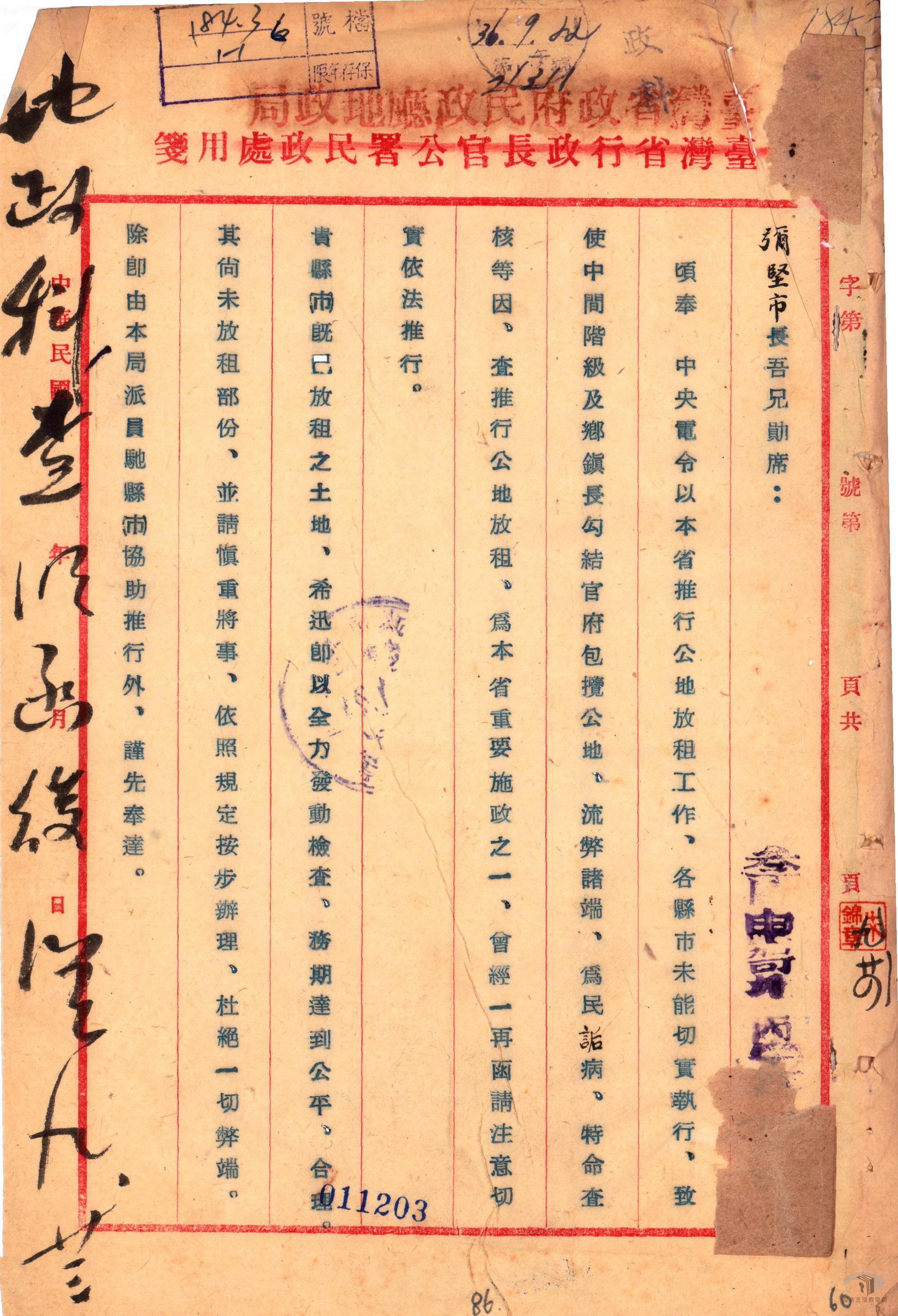 為改善臺灣佃農待遇、安定農村,臺灣省行政長官公署先在民國35年(1946)公布《公有耕地放租辦法》,讓農民可以用較低的租金,承租政府公有地。政府遷臺後,為防堵對岸共產勢力的擴張,遂更積極地實施農地改革。民國38年(1949)先實施三七五減租,目標是針對減輕租額和保障佃農權益,並以尚能接受的租佃比例,緩和地主和佃農、政府間的對立,並期增加農民生產意願。此一政策效果甚佳,佃農不僅收益大增,生活也獲改善。