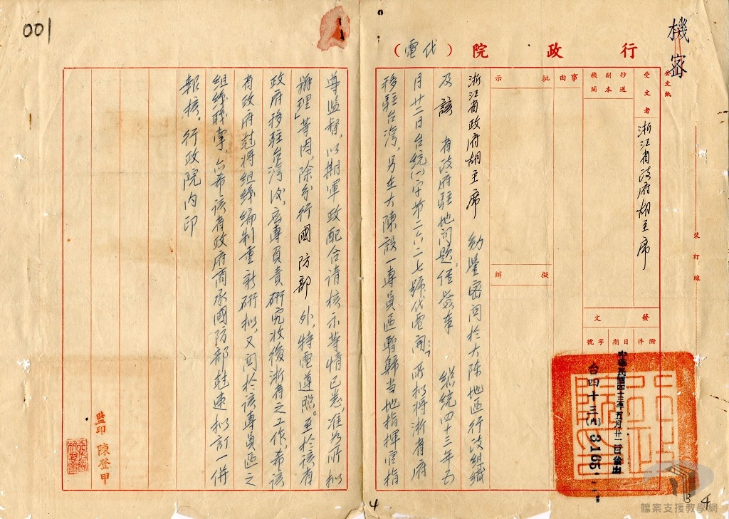 民國38年(1949)1月蔣中正總統引退,由副總統李宗仁代理總統職務。4月國共和談破裂,共軍渡過長江,南京淪陷。6月蔣中正抵臺北,為中央政府遷臺預作準備。南京淪陷後,中央政府曾先後遷都廣州、重慶及成都,最後仍不敵共軍的攻勢,12月中華民國政府遷都臺北,大陸成為淪陷區,中央政府等相關機構、下轄政府機關及人員在此時前後亦陸續遷至臺灣。