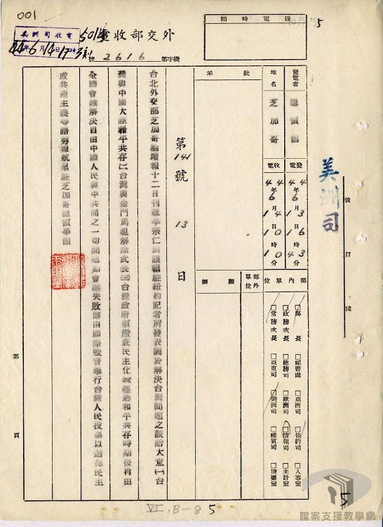 | 檔案管有機關 | 國家發展委員會檔案管理局 |