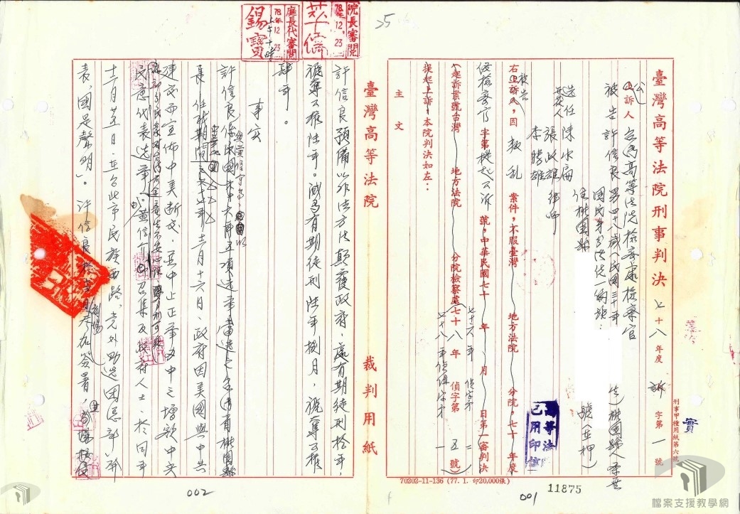 民國38年(1949)5月24日,政府為了處置叛亂犯,制定「懲治叛亂條例」,乃戒嚴時期的特別刑法,6月21日公布施行。期間歷經民國39年(1950)之修定,以及民國47年(1958)之再修定,迨至民國80年(1991)5月9日爆發「獨臺會事件」後,促使人們意識到該條例對人權造成威脅,於是出現廢除該條例之聲浪與釋放陳正然之抗議行動。終於民國80年(1991)5月17日由民進黨立院黨團於立法院提案,順利通過廢除。