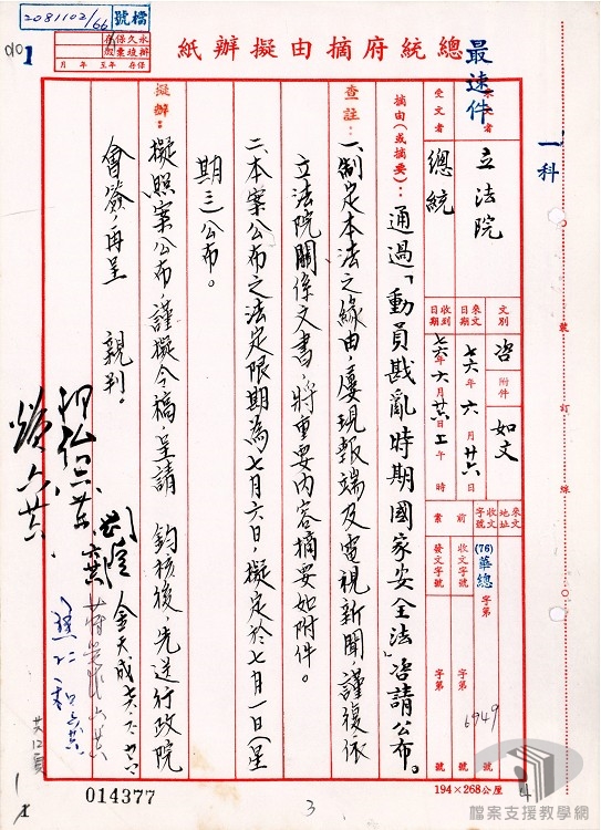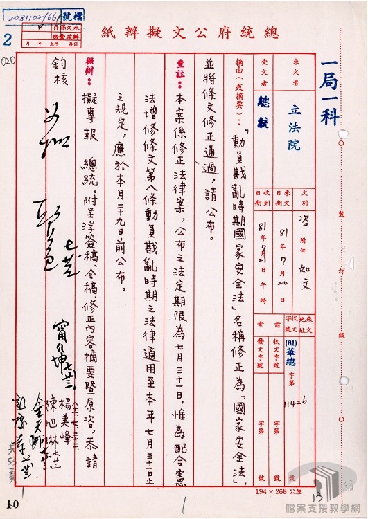 本教案主要利用國家發展委員會檔案管理局成立以來陸續自國防部史政編譯局、國防部軍務局、外交部、臺灣省政府、各縣市政府…等機關所移轉的檔案,配合高中職歷史科、公民與社會之課綱,擬定10個次主題。