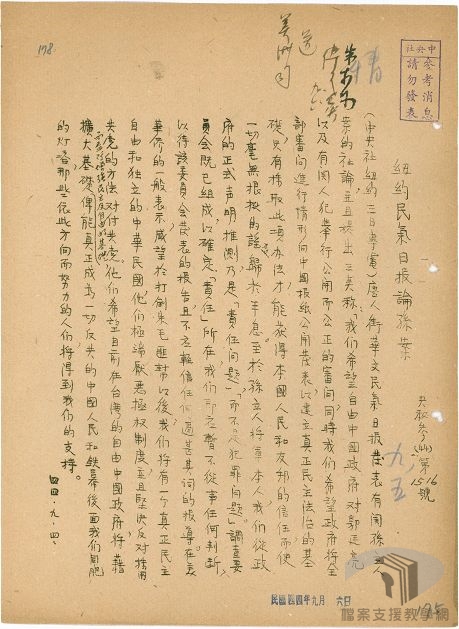 本教案主要利用國家發展委員會檔案管理局成立以來陸續自國防部史政編譯局、國防部軍務局、外交部、臺灣省政府、各縣市政府…等機關所移轉的檔案,配合高中職歷史科、公民與社會之課綱,擬定10個次主題。
