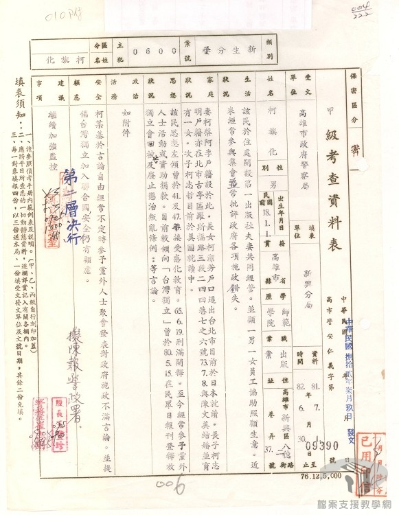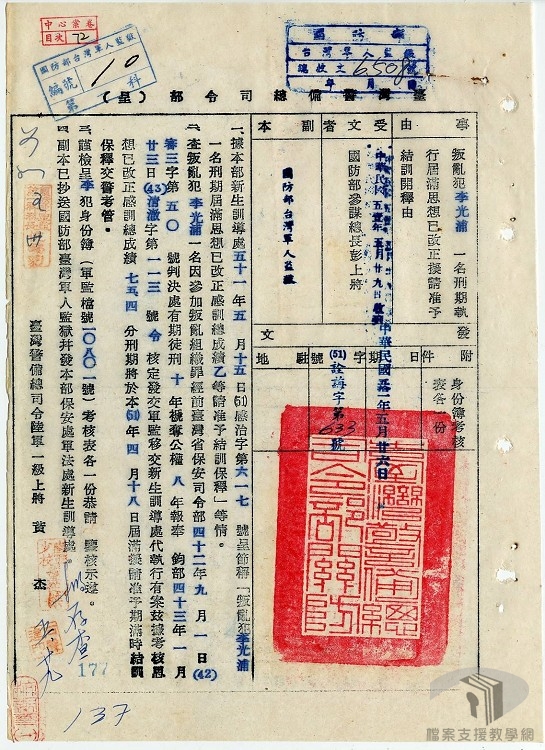 本教案主要利用國家發展委員會檔案管理局成立以來陸續自國防部史政編譯局、國防部軍務局、外交部、臺灣省政府、各縣市政府…等機關所移轉的檔案,配合高中職歷史科、公民與社會之課綱,擬定10個次主題。