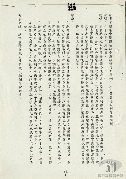 本教案主要利用國家發展委員會檔案管理局成立以來陸續自國防部史政編譯局、國防部軍務局、外交部、臺灣省政府、各縣市政府…等機關所移轉的檔案,配合高中職歷史科、公民與社會之課綱,擬定10個次主題。