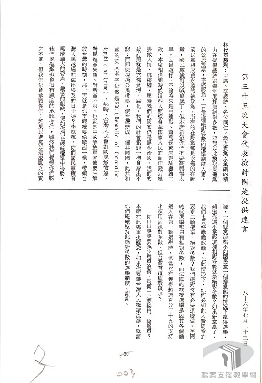民國39年(1950)6月韓戰爆發,可謂救了中華民國,美國為防堵共產勢力的擴大,第七艦隊協防臺灣,中美關係改善,獲得美國繼續援助,並在冷戰體制下,中華民國也成為美國西太平洋防堵共產勢力向東擴散的島鏈國之一,臺灣國際地位亦更加確立。蔣中正在此一有利的局勢下,為維持其政權,在動員戡亂時期臨時條款與戒嚴的保護傘下,遂行威權政治體制,製造白色恐怖,日後國內政治發展就在「從戒嚴到解嚴再到廢除動員戡亂時期臨時條款」的道路上,無論在中央政治體制或地方政治體制,皆能朝著自由、民主政治、政黨政治、政府決策過程更為透明的方向邁進。現在國人在享受自由與民主之果實的當下,更能凸顯出這一段血淚交織史的重要性。