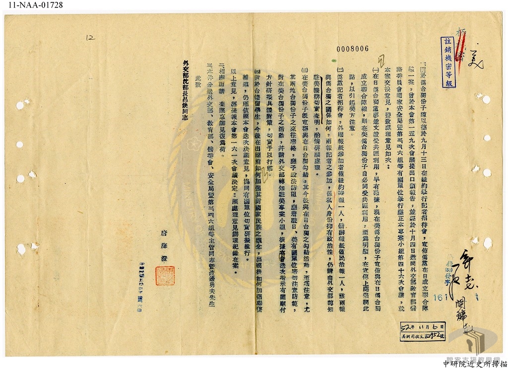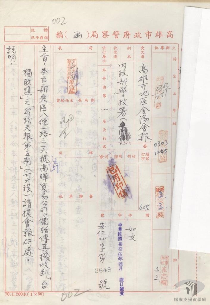 本教案主要利用國家發展委員會檔案管理局成立以來陸續自國防部史政編譯局、國防部軍務局、外交部、臺灣省政府、各縣市政府…等機關所移轉的檔案,配合高中職歷史科、公民與社會之課綱,擬定10個次主題。