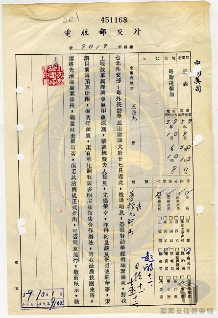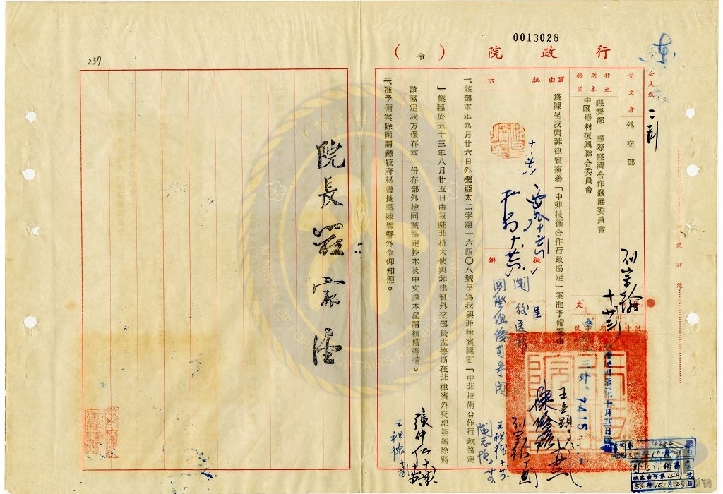 我國政府派團至海外進行經濟技術援助,始於民國48年(1959)12月派赴越南的農技團。此後,對外經濟技術合作,成為我國外交發展的重要策略。民國50年代,與我國經濟援助或合作的國家日益增多,以非洲國家效果較為顯著,並設有「中非技術合作委員會」,專責執行對非洲國家的農業技術合作事宜。