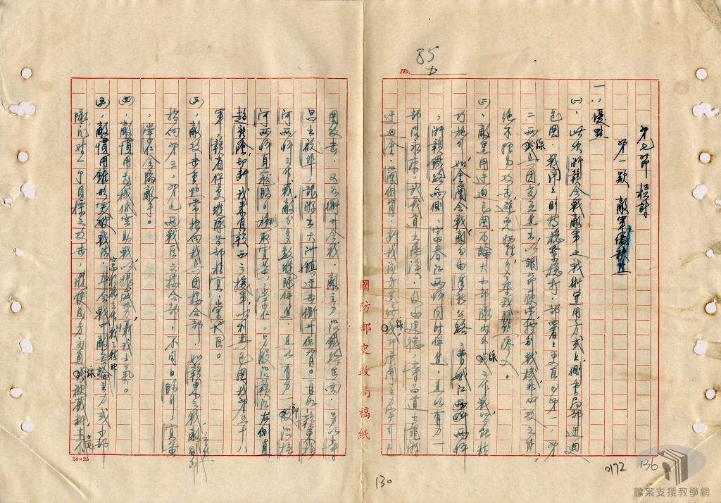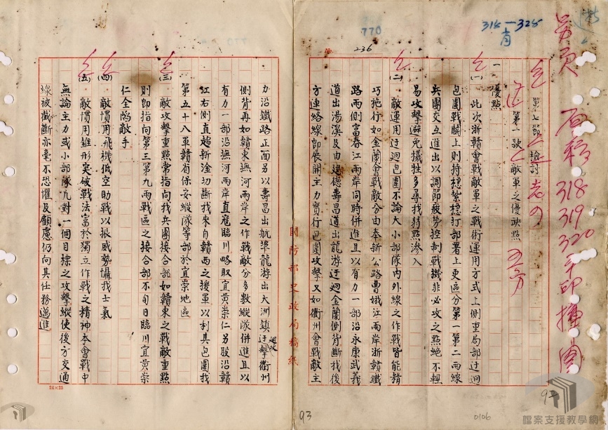中國的國際地位是抗戰期間另一值得關注問題,自太平洋戰事發生後,蔣中正成為遠東戰區總司令,民國32年(1943)1月11日,中英、中美簽訂新約,廢除不平等條約是孫中山遺願,中國忝為世界五強之列,自然值得肯定。 本次研究計劃案,將時間斷限設定在抗日戰爭期間(民國26年至34年),利用國家發展委員會檔案管理局所典藏之國防部史政編譯局、外交部、教育部、行政院、內政部等單位之國家檔案,從中挑選相關之重要檔案史料,以「重要戰役與軍事勤務」、「對外關係」、「烽火歲月下人民的困頓與因應」、「救亡圖存下的文教」、「非常時期下的國內政局」等五大次主題,各次主題下又再細分為若干重點以進行研究撰寫。