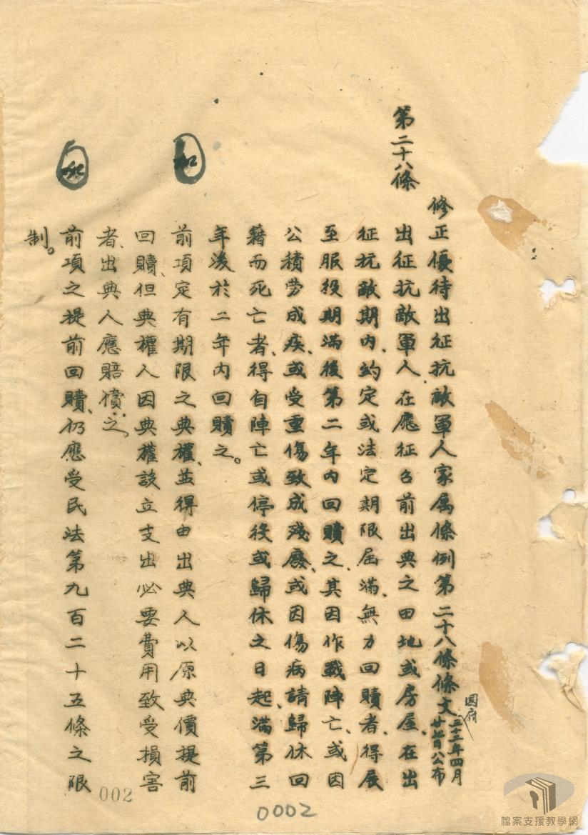 出征軍人若是因軍事行動受到傷殘甚至於陣亡,征屬亦可得到相應的補償,以做為安家之用。這些優待征屬的措施,正是政府用以號召更多的民眾加入軍隊行列的方法之一。