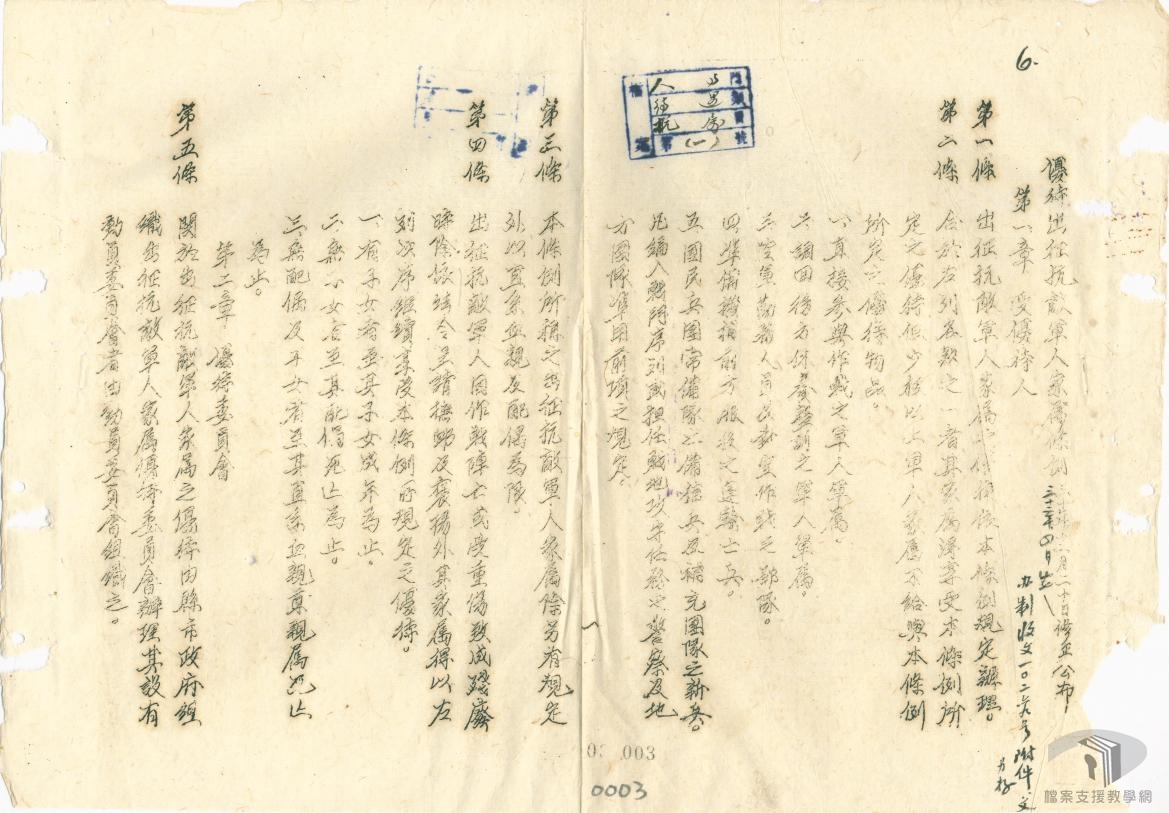 中國的國際地位是抗戰期間另一值得關注問題,自太平洋戰事發生後,蔣中正成為遠東戰區總司令,民國32年(1943)1月11日,中英、中美簽訂新約,廢除不平等條約是孫中山遺願,中國忝為世界五強之列,自然值得肯定。 本次研究計劃案,將時間斷限設定在抗日戰爭期間(民國26年至34年),利用國家發展委員會檔案管理局所典藏之國防部史政編譯局、外交部、教育部、行政院、內政部等單位之國家檔案,從中挑選相關之重要檔案史料,以「重要戰役與軍事勤務」、「對外關係」、「烽火歲月下人民的困頓與因應」、「救亡圖存下的文教」、「非常時期下的國內政局」等五大次主題,各次主題下又再細分為若干重點以進行研究撰寫。