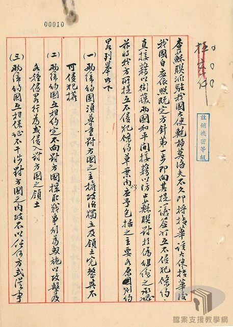 簽訂條約對中、蘇關係具有重要意義,在抗戰初期蘇聯的軍火裝備與軍事顧問為中國提供重要幫助。民國30年(1941)4月,蘇、日簽訂《中立條約》,解除日本威脅;6月22日,德國入侵蘇聯,蘇聯無暇東顧。民國31年(1942)2月,蘇聯召回駐華軍事顧問不再援華抗日。