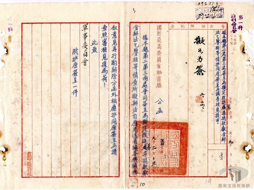 中國的國際地位是抗戰期間另一值得關注問題,自太平洋戰事發生後,蔣中正成為遠東戰區總司令,民國32年(1943)1月11日,中英、中美簽訂新約,廢除不平等條約是孫中山遺願,中國忝為世界五強之列,自然值得肯定。 本次研究計劃案,將時間斷限設定在抗日戰爭期間(民國26年至34年),利用國家發展委員會檔案管理局所典藏之國防部史政編譯局、外交部、教育部、行政院、內政部等單位之國家檔案,從中挑選相關之重要檔案史料,以「重要戰役與軍事勤務」、「對外關係」、「烽火歲月下人民的困頓與因應」、「救亡圖存下的文教」、「非常時期下的國內政局」等五大次主題,各次主題下又再細分為若干重點以進行研究撰寫。