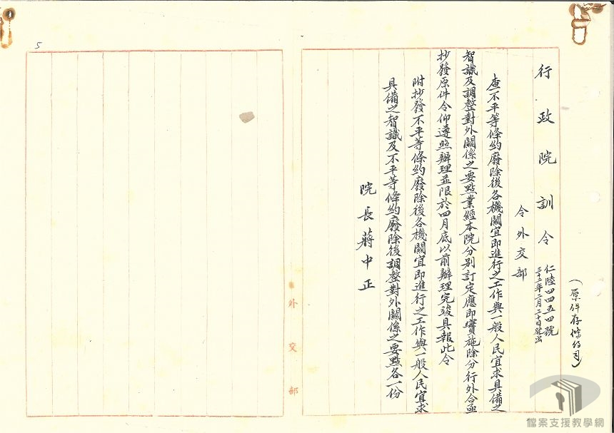 中國的國際地位是抗戰期間另一值得關注問題,自太平洋戰事發生後,蔣中正成為遠東戰區總司令,民國32年(1943)1月11日,中英、中美簽訂新約,廢除不平等條約是孫中山遺願,中國忝為世界五強之列,自然值得肯定。 本次研究計劃案,將時間斷限設定在抗日戰爭期間(民國26年至34年),利用國家發展委員會檔案管理局所典藏之國防部史政編譯局、外交部、教育部、行政院、內政部等單位之國家檔案,從中挑選相關之重要檔案史料,以「重要戰役與軍事勤務」、「對外關係」、「烽火歲月下人民的困頓與因應」、「救亡圖存下的文教」、「非常時期下的國內政局」等五大次主題,各次主題下又再細分為若干重點以進行研究撰寫。