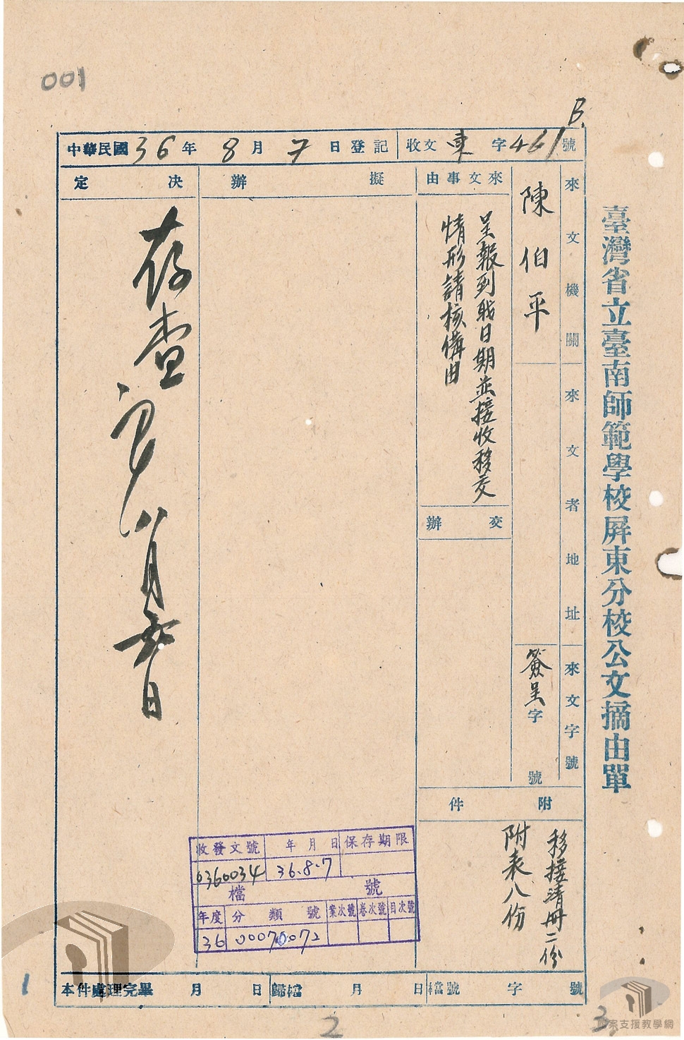 有鑑於此,以此段期間臺灣的接收與治理為主題,利用移轉自國防部史政編譯局、國史館、臺灣省文獻委員會(今國史館臺灣文獻館)、臺灣省諮議會、各縣市政府等機關之國家檔案,從中擇選適切之檔案素材,除可配合高中歷史課程課綱,提供教師授課使用,亦有利於推展檔案與歷史結合的加值應用,增進檔案應用機會,創造文化資產價值。