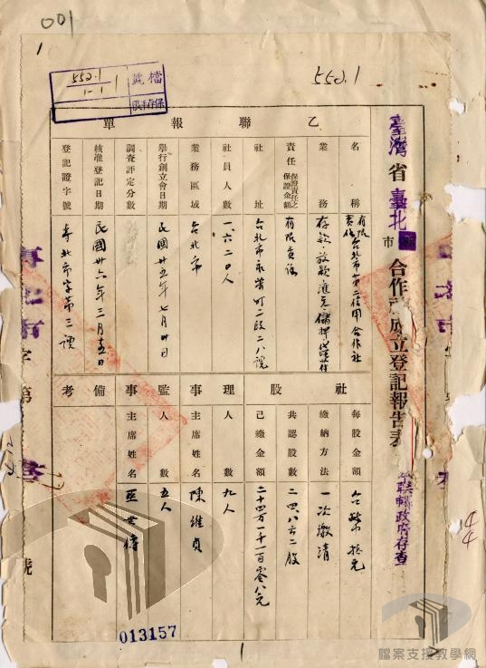 依據民國23年(1934)施行的「合作社法」之規定,合作社係指立於平等原則,在互助組織的基礎上,透過共同經營的方法,謀求社員經濟利益與生活改善之法人團體,而其社員人數及股金總額均可變動。日據時期,臺灣合作社經由「產業組合」模式運作,例如某某信用組合。光復後,臺灣合作社種類計有生產、運銷、供給、利用、勞動、消費、公用、運輸、信用、保險,以及合作農場等。
