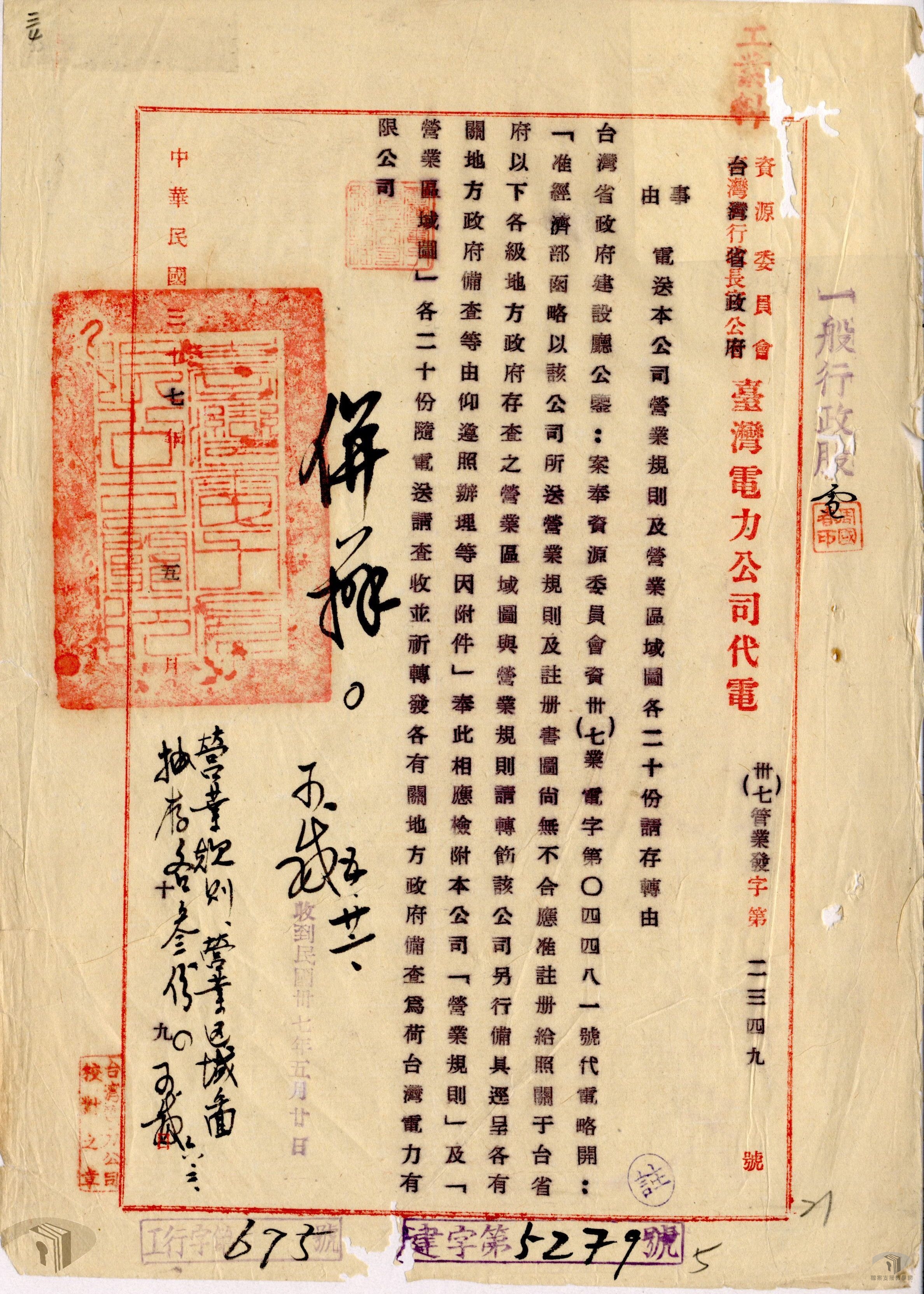 電力是現代化生活的基石,也是經濟發展的動力。臺灣之有電力,始於清光緒14年(1888)劉銘傳裝置小型蒸汽燃煤發電機,供應衙門及新起街等照明之用。日本據臺陸續開發水力、火力發電,並於大正8年(1919)年成立臺灣電力株式會社以總其成。光復後,政府接收該會社並改組成立臺灣電力有限公司。由於戰爭的破壞,光復初期臺電首要工作就是將被炸燬的設備先予修復,恢復電力,以利各產業的整建與發展。