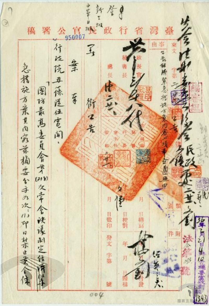 臺灣省行政長官陳儀透過公營體制控制臺灣的金融資源,並以課稅、外匯管理、實施專賣制度、物價查報、降低通貨膨脹、擴增物資等財經達成其支持生產與經濟安定的目的。在陳儀向中央積極爭取下,臺灣銀行擁有獨立的貨幣發行權,此舉在於力阻大陸通貨膨脹波瀾影響臺灣。但事與願違,臺灣通貨膨脹仍無法避免。民國38年(1949)6月15日,台灣省政府公布「臺灣省幣制改革方案」、「新臺幣發行辦法」,正式發行新臺幣,明訂4萬元舊臺幣兌換1元新臺幣。