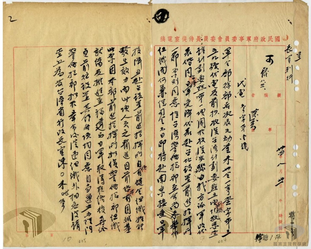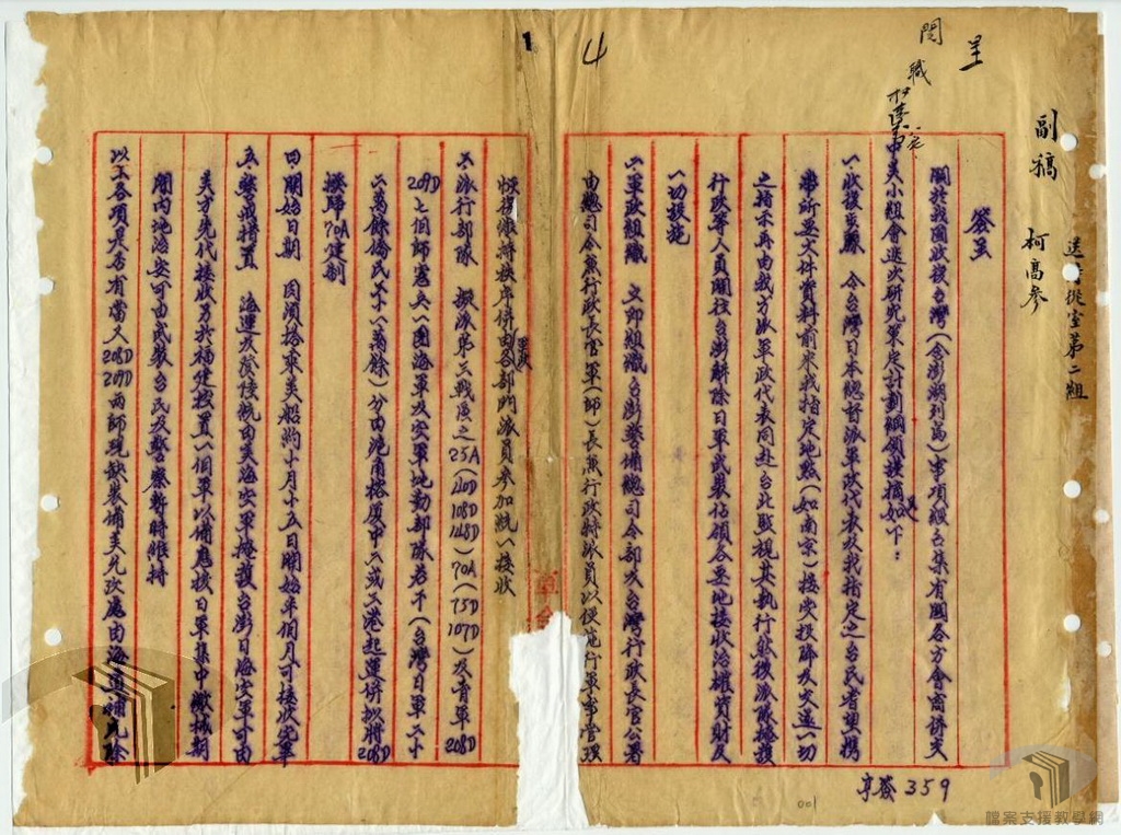 有鑑於此,以此段期間臺灣的接收與治理為主題,利用移轉自國防部史政編譯局、國史館、臺灣省文獻委員會(今國史館臺灣文獻館)、臺灣省諮議會、各縣市政府等機關之國家檔案,從中擇選適切之檔案素材,除可配合高中歷史課程課綱,提供教師授課使用,亦有利於推展檔案與歷史結合的加值應用,增進檔案應用機會,創造文化資產價值。