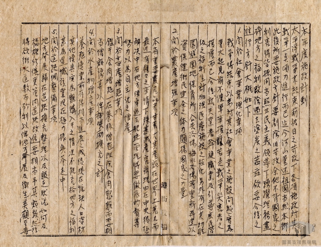 有鑑於此,以此段期間臺灣的接收與治理為主題,利用移轉自國防部史政編譯局、國史館、臺灣省文獻委員會(今國史館臺灣文獻館)、臺灣省諮議會、各縣市政府等機關之國家檔案,從中擇選適切之檔案素材,除可配合高中歷史課程課綱,提供教師授課使用,亦有利於推展檔案與歷史結合的加值應用,增進檔案應用機會,創造文化資產價值。