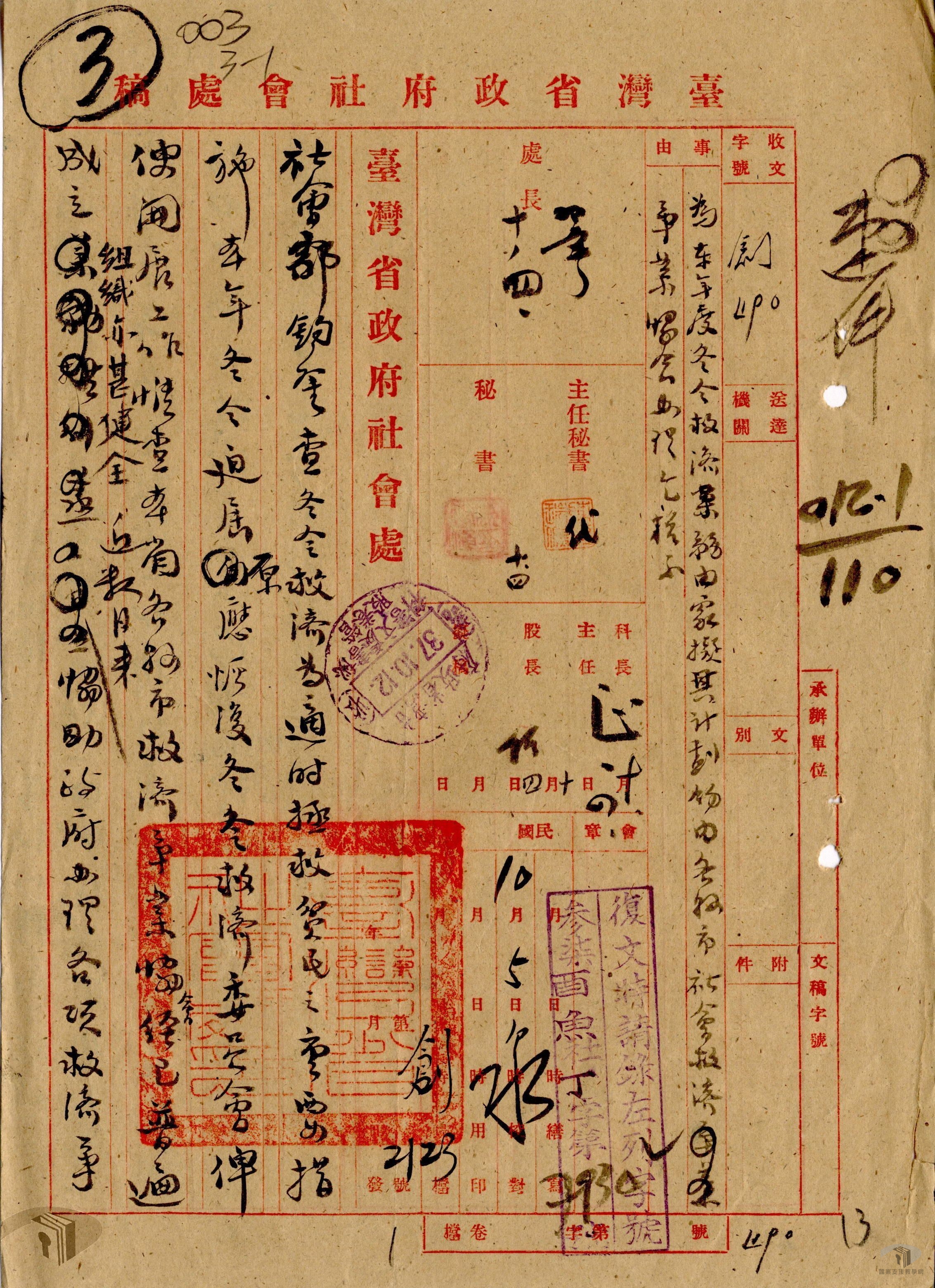 臨時性的社會救助事業,有別於固定式院所教養與收容,計有災害救濟、冬令救濟以及難胞救助等3項。民國35年(1946)12月,依據「臺灣省冬令救濟實施辦法」規定,冬令救濟由各縣市政府發動有關機關團體暨地方公正熱心人士,組織縣市冬令救濟委員會,酌量地方情形舉辦工賑、施放米穀、發售平價或施送衣被、發放貸金、設置冬令臨時收容所等各項救濟方式。