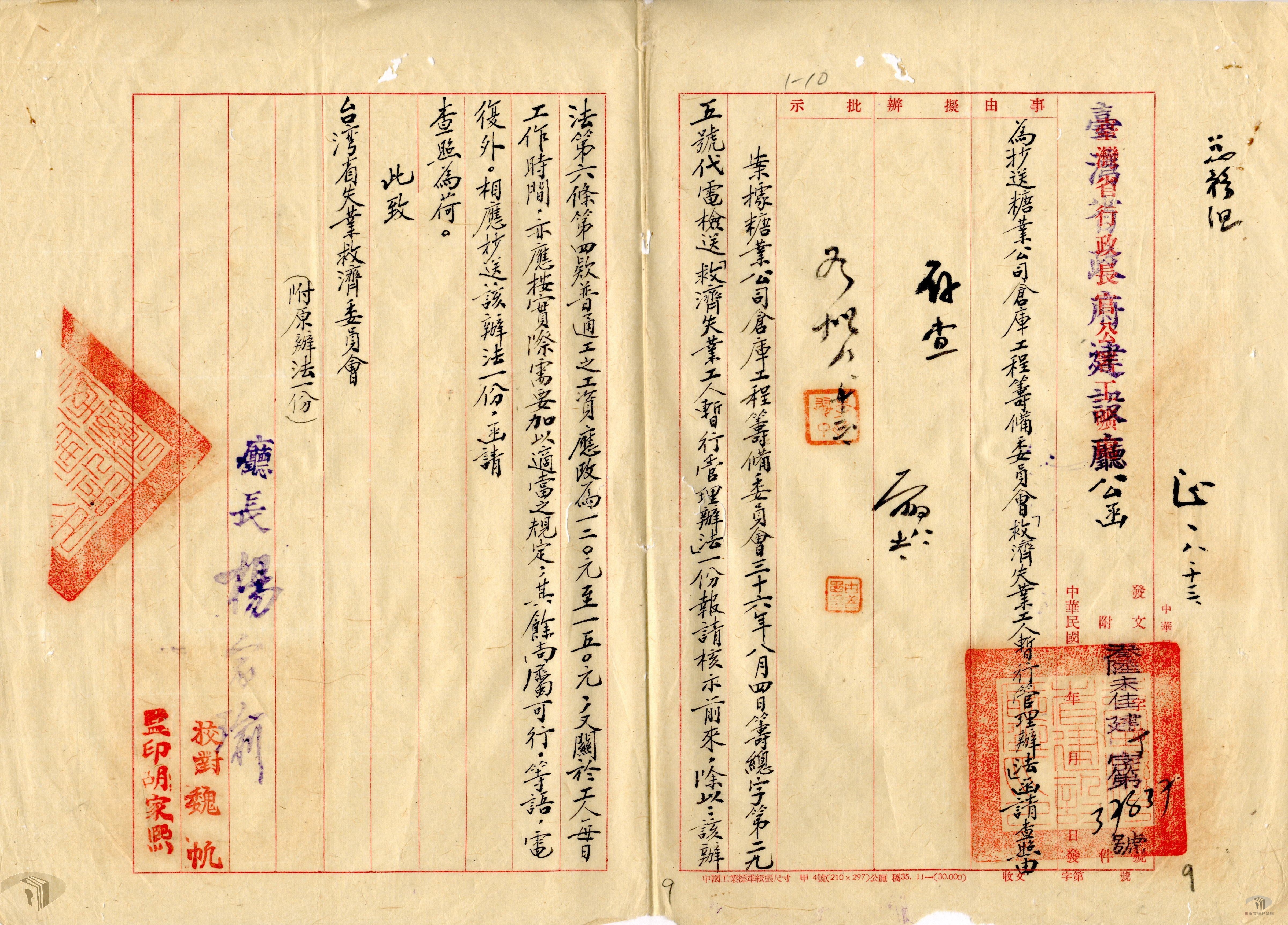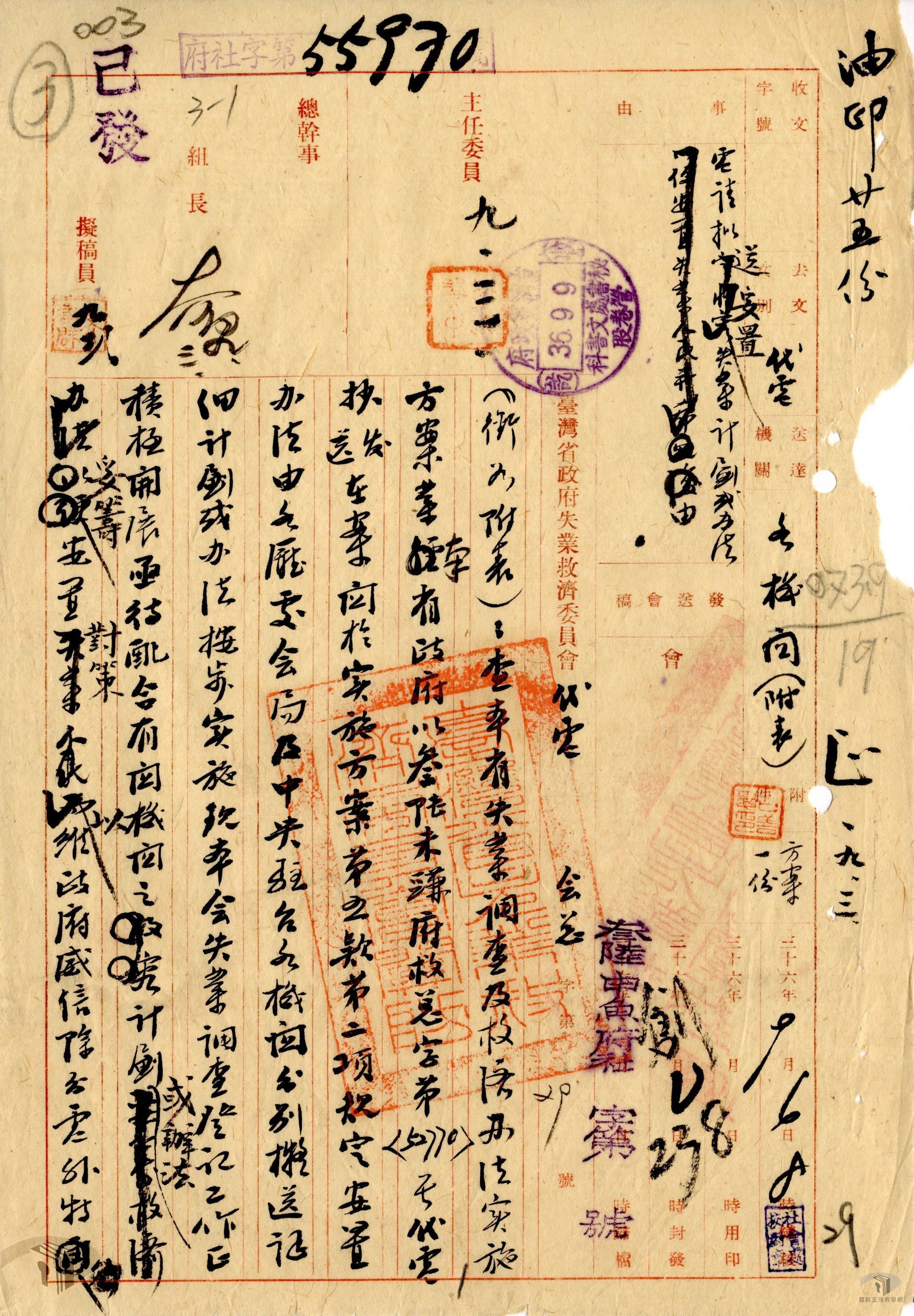 光復初期,臺灣失業人口甚多,加上海外回籍臺人,致使失業率趨於惡化。臺灣省政府加強地方救濟及增設習藝機構,亦成立臺灣省失業救濟委員會,並於民國36年(1947)8月通過「臺灣省失業調查及救濟辦法實施方案」,即透過宣傳表示政府救濟失業的決心,爭取社會人士及人民團體協助政府辦理救濟失業。與此同時,臺灣省政府展開失業人口調查、職業容量調查,設法安排失業人口就業,以降低失業率。