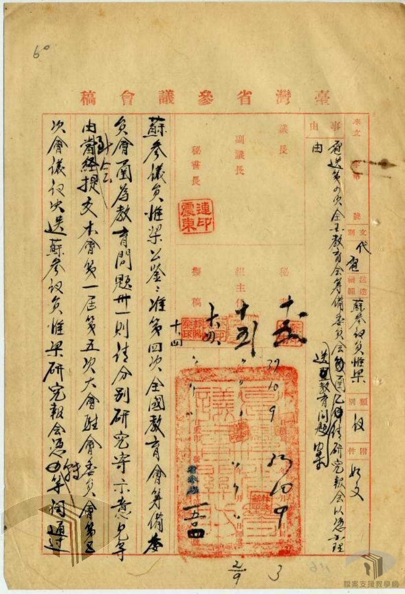 有鑑於此,以此段期間臺灣的接收與治理為主題,利用移轉自國防部史政編譯局、國史館、臺灣省文獻委員會(今國史館臺灣文獻館)、臺灣省諮議會、各縣市政府等機關之國家檔案,從中擇選適切之檔案素材,除可配合高中歷史課程課綱,提供教師授課使用,亦有利於推展檔案與歷史結合的加值應用,增進檔案應用機會,創造文化資產價值。