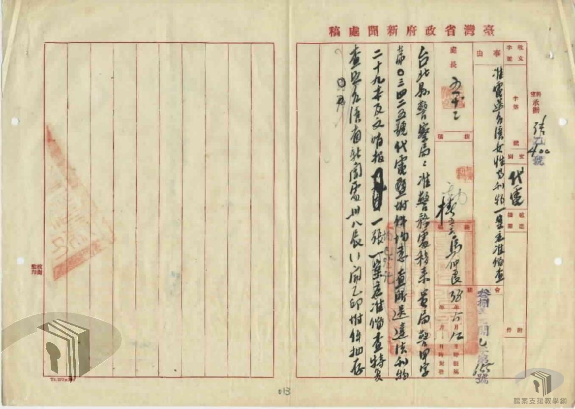 有鑑於此,以此段期間臺灣的接收與治理為主題,利用移轉自國防部史政編譯局、國史館、臺灣省文獻委員會(今國史館臺灣文獻館)、臺灣省諮議會、各縣市政府等機關之國家檔案,從中擇選適切之檔案素材,除可配合高中歷史課程課綱,提供教師授課使用,亦有利於推展檔案與歷史結合的加值應用,增進檔案應用機會,創造文化資產價值。