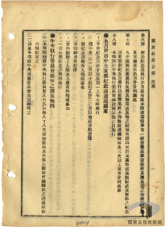 民國17年(1928)2月,國民黨召開第二屆四中全會,會中通過「改組中央黨部案」,開除中央執行委員、中央監察委員中共產黨員的國民黨籍;並通過「整理各地黨務案」、「制止共產黨陰謀案」等決議,容共政策結束。