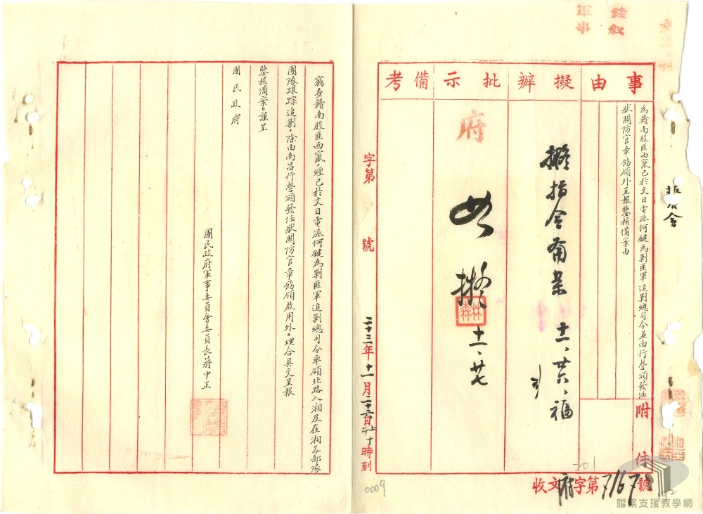 民國25年(1936)12月12日,西北剿匪副司令張學良與楊虎城,於西安發動「兵變」劫持蔣中正,此即「西安事變」。事件和平解決後,民國26年(1937)1月,裁撤西北剿匪總部,改變「攘外必先安內」的基本國策,對中共問題尋求政治解決。民國26年(1937)2月起,國民政府與中共談判,中共同意結束分離主義、暫緩階級鬥爭運動,國民政府則宣布承認中共合法,並同意將紅軍改編為國民革命軍第八路軍,稱之為「國共合作」。