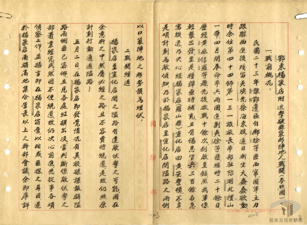 民國21年(1932)9月,徐向前指揮的紅四方面軍位於豫鄂皖邊區的新集、金家寨被國軍攻破後,徐向前即率領共軍往西突圍,國軍由衛立煌率領中路軍第六縱隊奉令追剿。