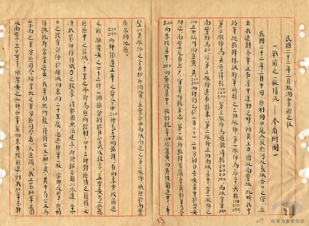 民國21年(1932)1月28日日軍進攻上海,使剿共工作暫時中斷,5月,中日上海停戰協定簽字,上海戰事結束,國民政府決定於南昌設立「贛粵閩邊區剿匪總司令部」,籌劃剿共工作。4月19日,國民政府正式任命何應欽為剿匪總司令,陳濟棠為副總司令。