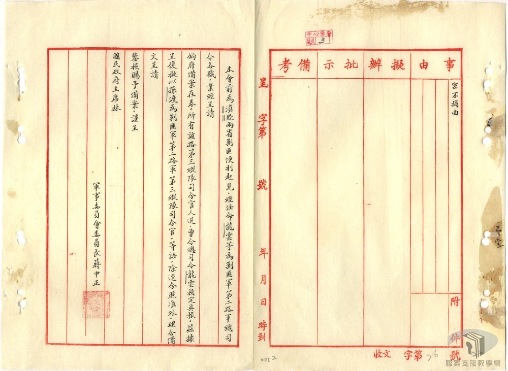民國25年(1936)12月12日,西北剿匪副司令張學良與楊虎城,於西安發動「兵變」劫持蔣中正,此即「西安事變」。事件和平解決後,民國26年(1937)1月,裁撤西北剿匪總部,改變「攘外必先安內」的基本國策,對中共問題尋求政治解決。民國26年(1937)2月起,國民政府與中共談判,中共同意結束分離主義、暫緩階級鬥爭運動,國民政府則宣布承認中共合法,並同意將紅軍改編為國民革命軍第八路軍,稱之為「國共合作」。