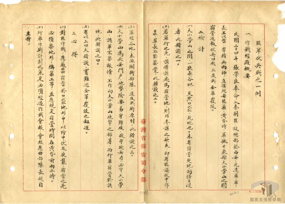 民國25年(1936)12月12日,西北剿匪副司令張學良與楊虎城,於西安發動「兵變」劫持蔣中正,此即「西安事變」。事件和平解決後,民國26年(1937)1月,裁撤西北剿匪總部,改變「攘外必先安內」的基本國策,對中共問題尋求政治解決。民國26年(1937)2月起,國民政府與中共談判,中共同意結束分離主義、暫緩階級鬥爭運動,國民政府則宣布承認中共合法,並同意將紅軍改編為國民革命軍第八路軍,稱之為「國共合作」。
