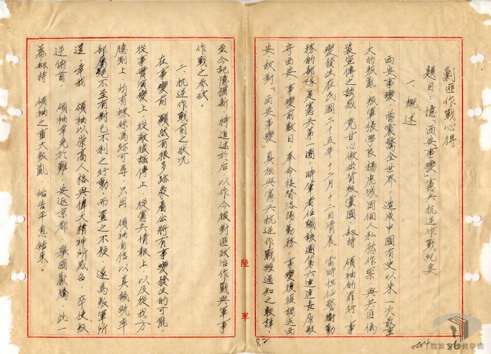 民國25年(1936)12月12日,西北剿匪副司令張學良與楊虎城,於西安發動「兵變」劫持蔣中正,此即「西安事變」。事件和平解決後,民國26年(1937)1月,裁撤西北剿匪總部,改變「攘外必先安內」的基本國策,對中共問題尋求政治解決。民國26年(1937)2月起,國民政府與中共談判,中共同意結束分離主義、暫緩階級鬥爭運動,國民政府則宣布承認中共合法,並同意將紅軍改編為國民革命軍第八路軍,稱之為「國共合作」。